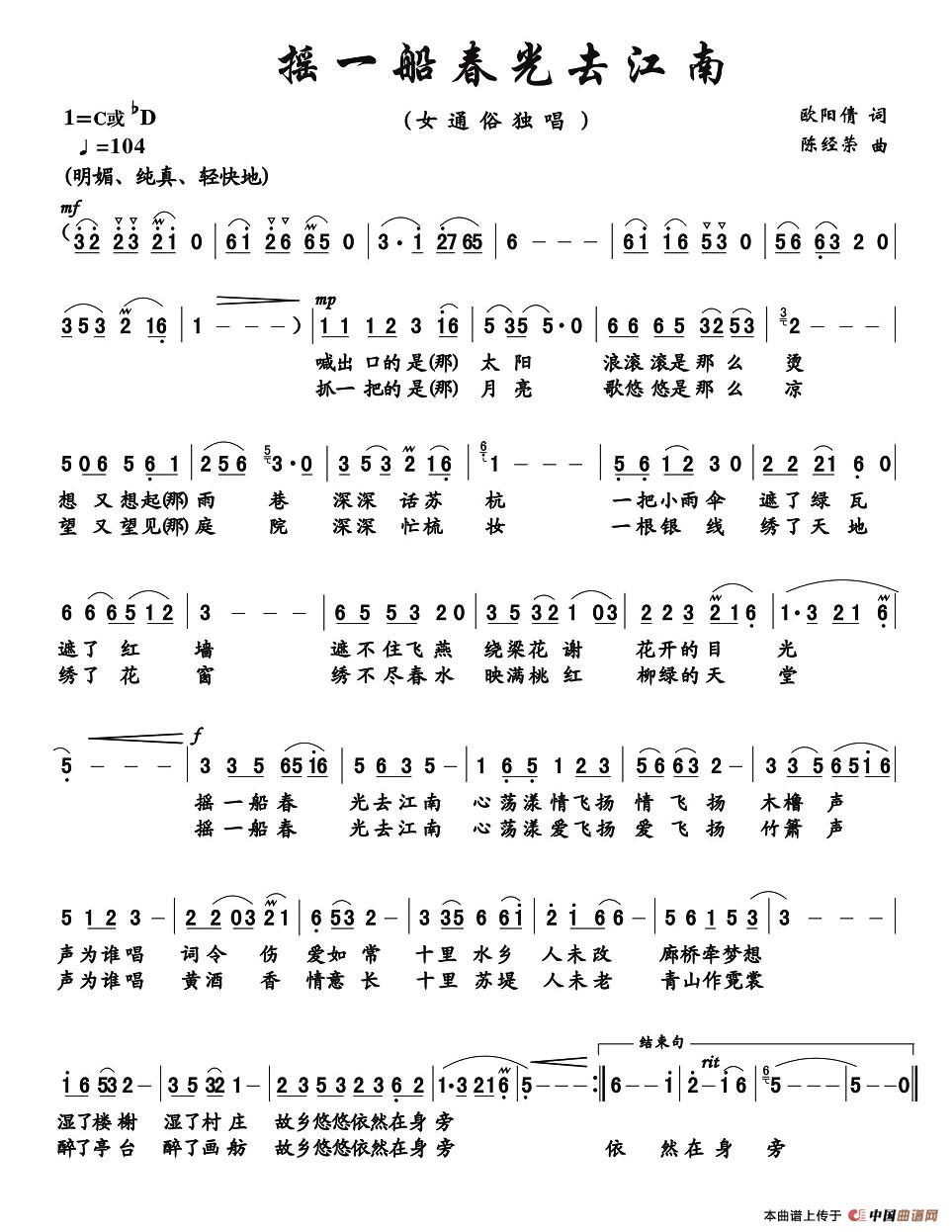 陈经荣曲谱推荐永远的牵挂(金沙词 陈经荣曲)心醉丹霞花(女声小组唱)人间天堂(魏力兴词 陈经荣曲)我是消防队伍一个兵我骄傲,我是中国人我的凤凰我是湘江一朵浪花(程志强 吴助斌 刘德才 词 陈经荣曲)心想事成(龚正斌词 陈经荣曲)三湘四水美如画(左正德词 左正德 陈经荣曲)最美是常宁湘妃竹回家路长长我是雷锋故乡一个兵冰雪缘,银色梦(魏力兴 梁恩锡词 陈经荣曲)喊一声妹子等哥回同乐共圆中国梦青春飞扬(颜娃沙词 陈经荣曲)幸福歌唱——声乐套曲《乐涌蒸水》之五好美的古蔺相约快乐