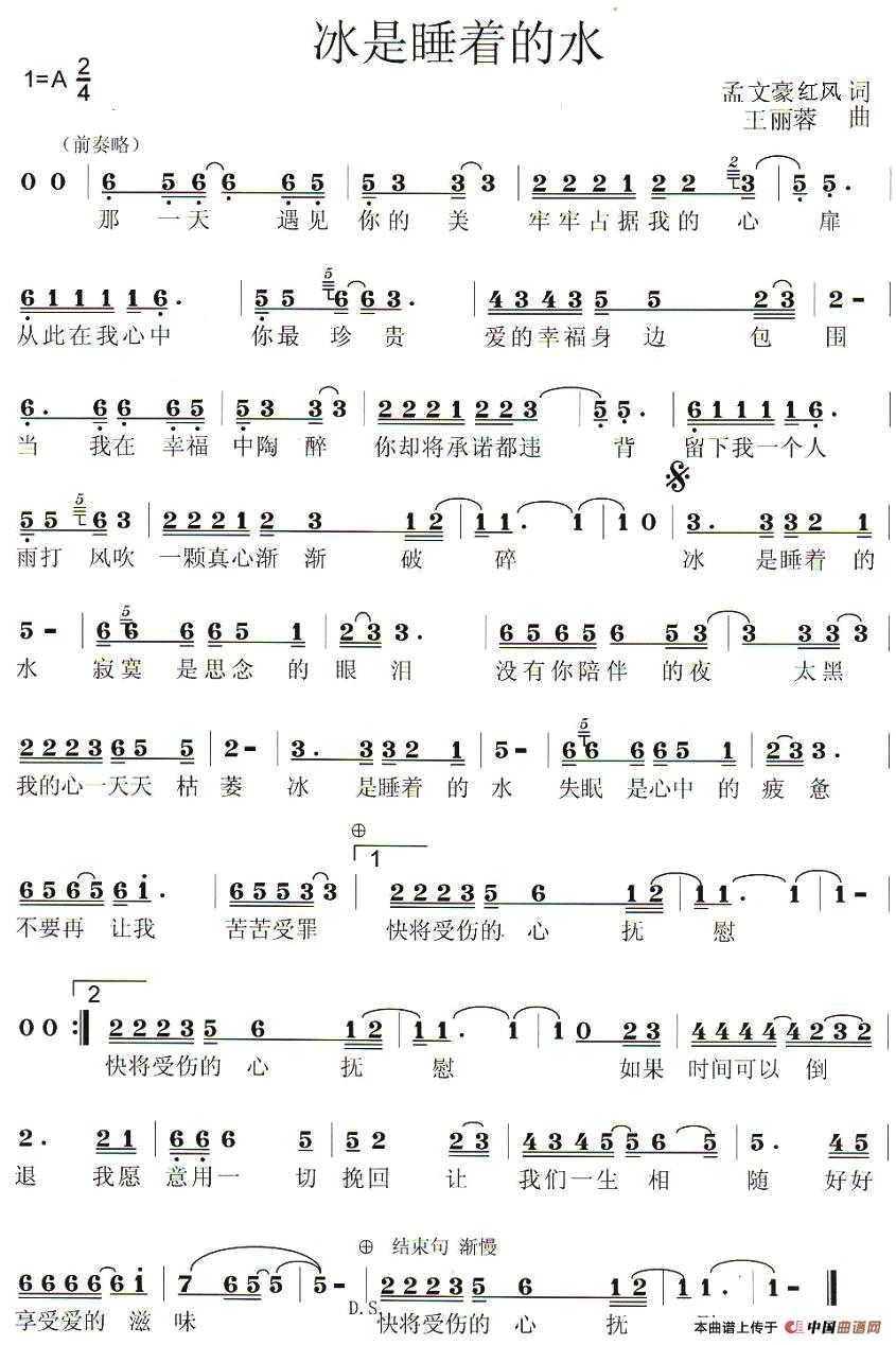 冰是睡着的水相关五线谱