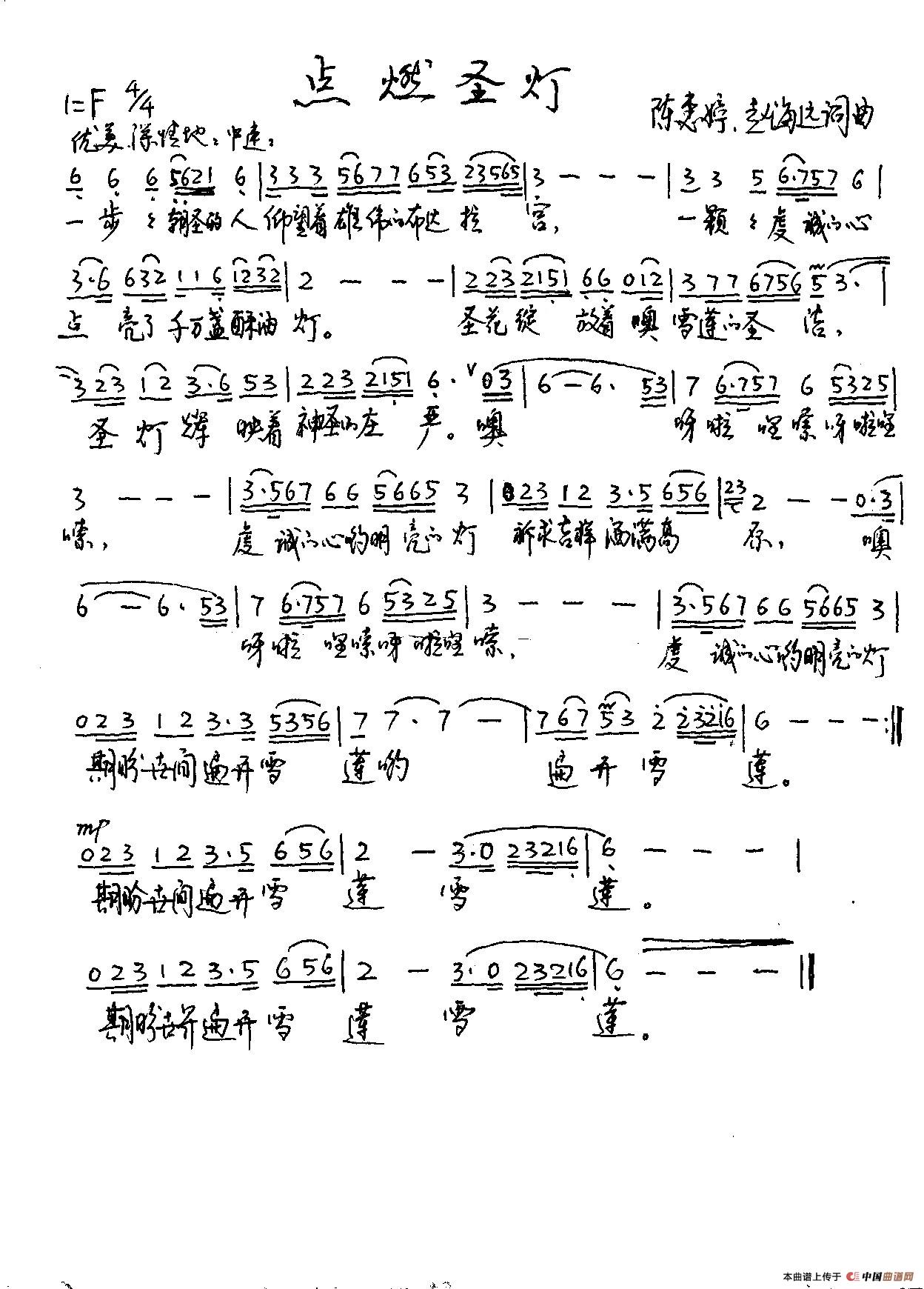 点燃圣灯相关五线谱