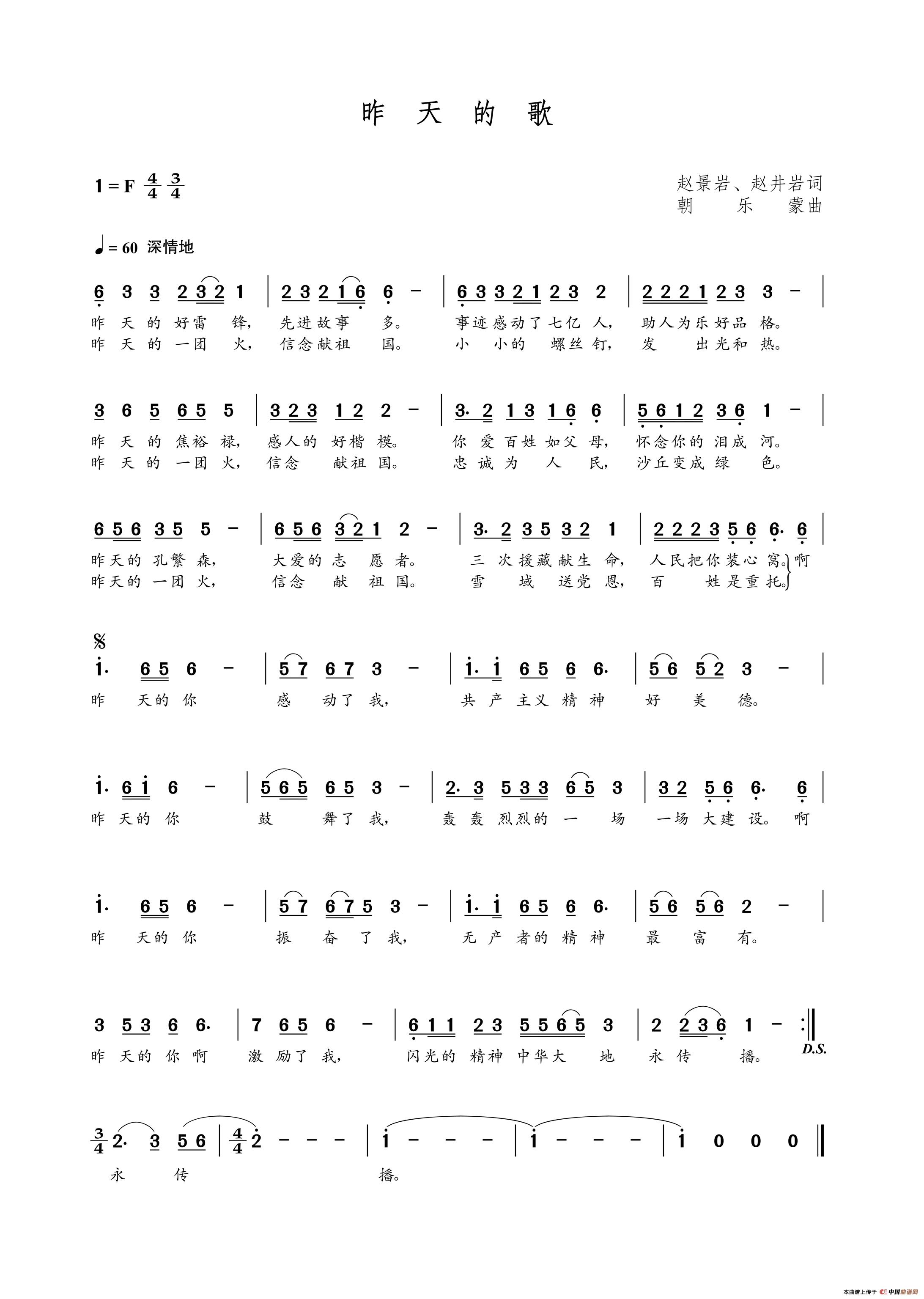 朝乐蒙曲谱推荐果实累累春满园(王林栋词 朝乐蒙曲)凌云之歌岳麓山红叶(艾长春词 朝乐蒙曲)茉莉花情缘(贝怀寅词 朝乐蒙曲)我的祝福(张萍词 朝乐蒙曲)有一条河流叫丹江(远洲词 朝乐蒙曲)右手向你举起(朝乐蒙曲)我去天上玩一玩(朝乐蒙曲)风雨相识(朝乐蒙曲)四海一家(冯涛词 朝乐蒙曲)男儿国是家(朝乐蒙曲)长城长江(赵泽林词 朝乐蒙曲)驾驶员之歌(孙垂泉词 朝乐蒙曲)吉祥中国(韩粟词 朝乐蒙曲)春天颂(许秋萍词 朝乐蒙曲)八声甘州(艾长春词 朝乐蒙曲)中国风(毛德勇词 朝乐蒙曲)新城新乡新时代(欧阳虎词 朝乐蒙曲)中华魂(赵泽清词 朝乐蒙曲)你的爱让人间温暖如春(朝乐蒙曲)