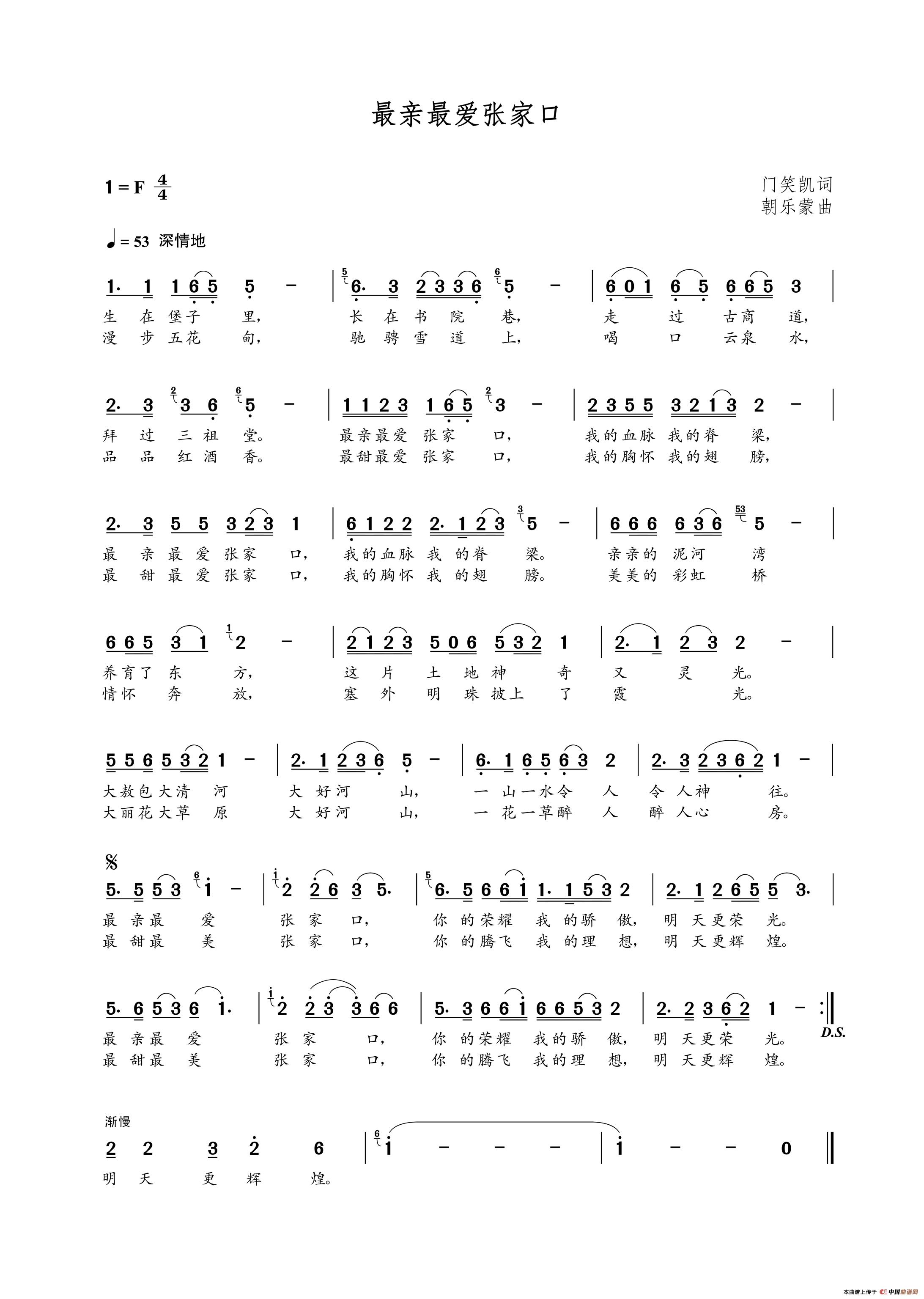 朝乐蒙曲谱推荐我们在路上(郝吉林词 朝乐蒙曲)爱你一生(佘萍词 朝乐蒙曲)家香(二水词 朝乐蒙曲)热血青春守望空防(王延勇词 朝乐蒙曲)玫瑰泪(王小科词 朝乐蒙曲)惠州放歌(侠名词 朝乐蒙曲)祖国妈妈(关训良词 朝乐蒙曲)山里姑娘爱出山(金昌国词 朝乐蒙曲)劳动者之歌(王新民词 朝乐蒙曲)肇东情(李金凤词 朝乐蒙曲)我站在吕梁山上(刘心灵词 朝乐蒙曲)咱是山里娃中国人的笑容(朝乐蒙曲)我爱广陵我的家(魏德泮词 朝乐蒙曲)怎能忘记你穿军装的背影(刘召利词 朝乐蒙曲)报个平安(张永红词 朝乐蒙曲)中国话(曹光斌词 朝乐蒙曲)都因见你那一回(朝乐蒙曲)乡村童年(魏方海词 朝乐蒙曲)今夜草原有雨