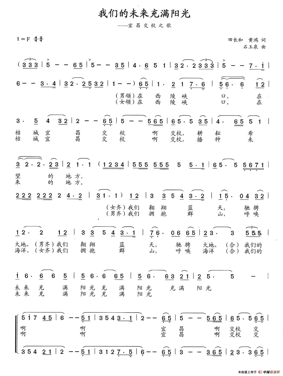 石玉泉曲谱推荐三峡月漫步在三峡大坝上三游洞之恋大关东(潘景超词 石玉泉曲)人生七十正当年三峡导游妹金灿灿的丰碑土家花背篓(二重唱)燕子之歌土家的路同学联谊会之歌(李贤 艾方洁 词 石玉泉曲)清江水摇着清江情我爱三峡,我爱宜昌梦中的九畹溪啊,中原我们的未来充满阳光(宜昌交校之歌)党和人民在一起(杨卫星词 石玉泉曲)梅花岭,我的家园(独唱、伴唱)湘中明镜峡江桔花开
