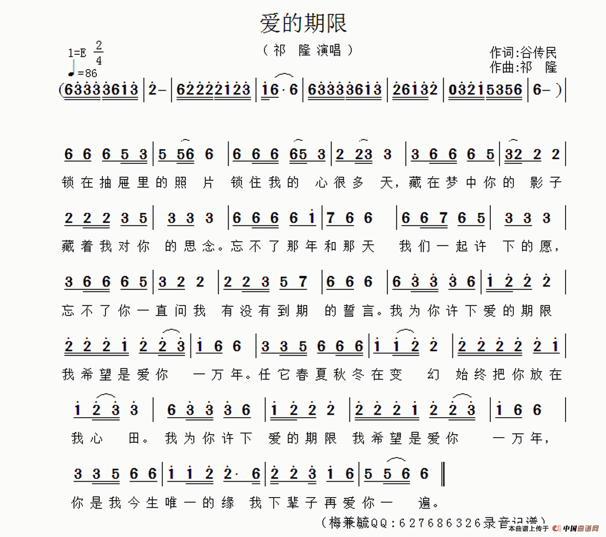 祁隆曲谱推荐情人泪如果你是落花老婆你辛苦了没有回头的爱情不会再让你哭期待和你再相遇爱的世界只有你(祁隆词曲)别伤害我谢谢最亲爱的你(祁隆&任妙音)一生为你感动一万个舍不得放下是一种解脱(逆水扬帆词 祁隆曲)爱你的话还没有说出口一生最爱的是你(祁隆词曲)真的不容易(祁隆词曲)风中花雨楼等你等了那么久(祁隆词曲)遥远的牧歌有你就足够放下所有放不下你