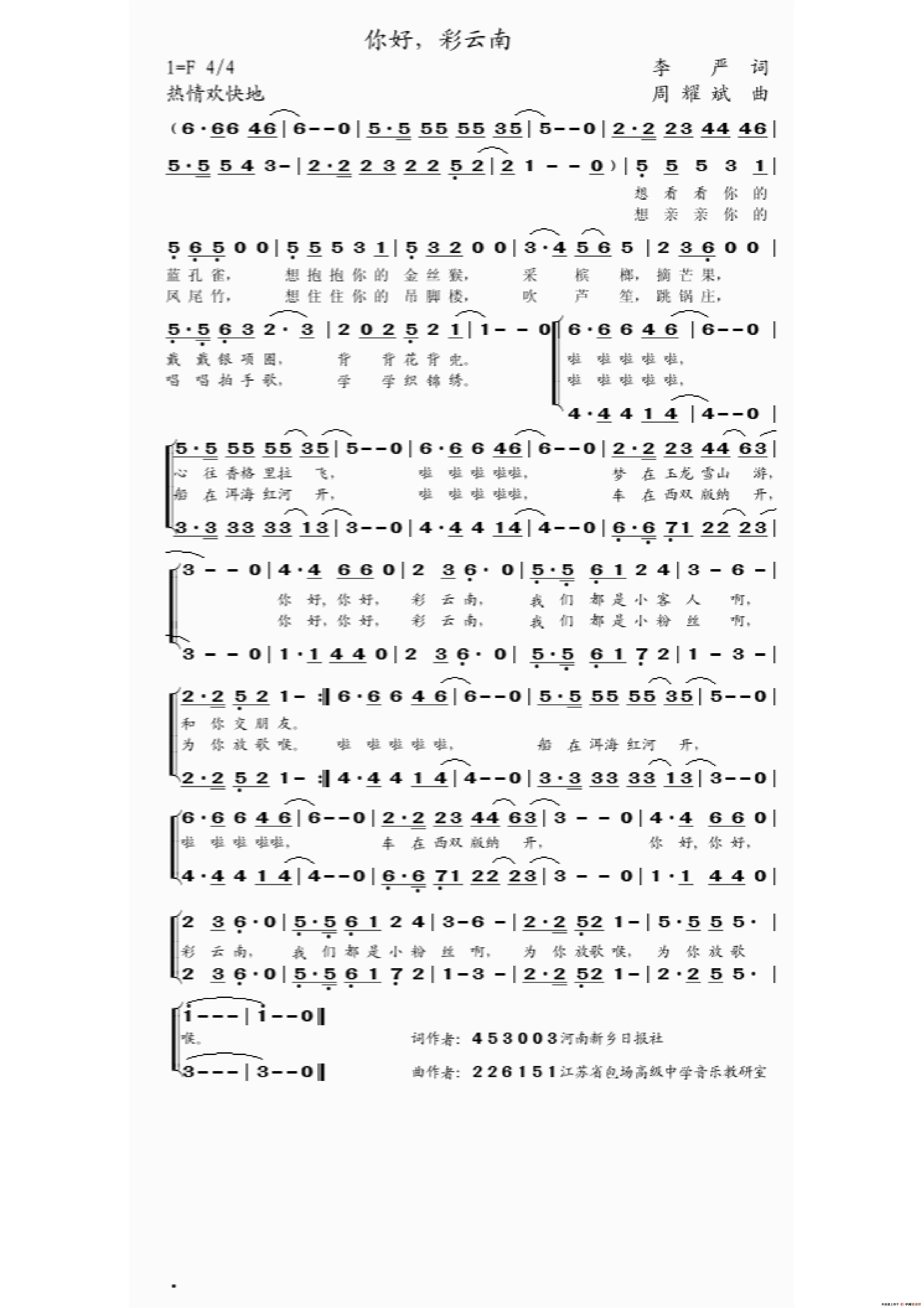 周耀斌曲谱推荐唱响海门山歌千岛星棋(张 海词 周耀斌曲)我爱妈妈大海之门2020抗疫组歌《红手印》(徐安国作词、周耀斌作曲)远方的客人来雪山(李严词 周耀斌曲)南通山水美(王子和词 周耀斌曲)有太阳的日子喷香绿色校园好爱心接力(缪新华词 周耀斌曲)东方中国(程建国词 周耀斌曲)亲人子弟兵2020抗疫组歌《我愿意》(田文蛟作词、周耀斌作曲)山歌向着新时代2020抗疫组歌《生命之上》(吴海琼作词、周耀斌作曲)家(李严词 周耀斌曲)运河正是十八九(崔增录词 周耀斌曲)家乡大沙河幸福在江阴捕蟹情