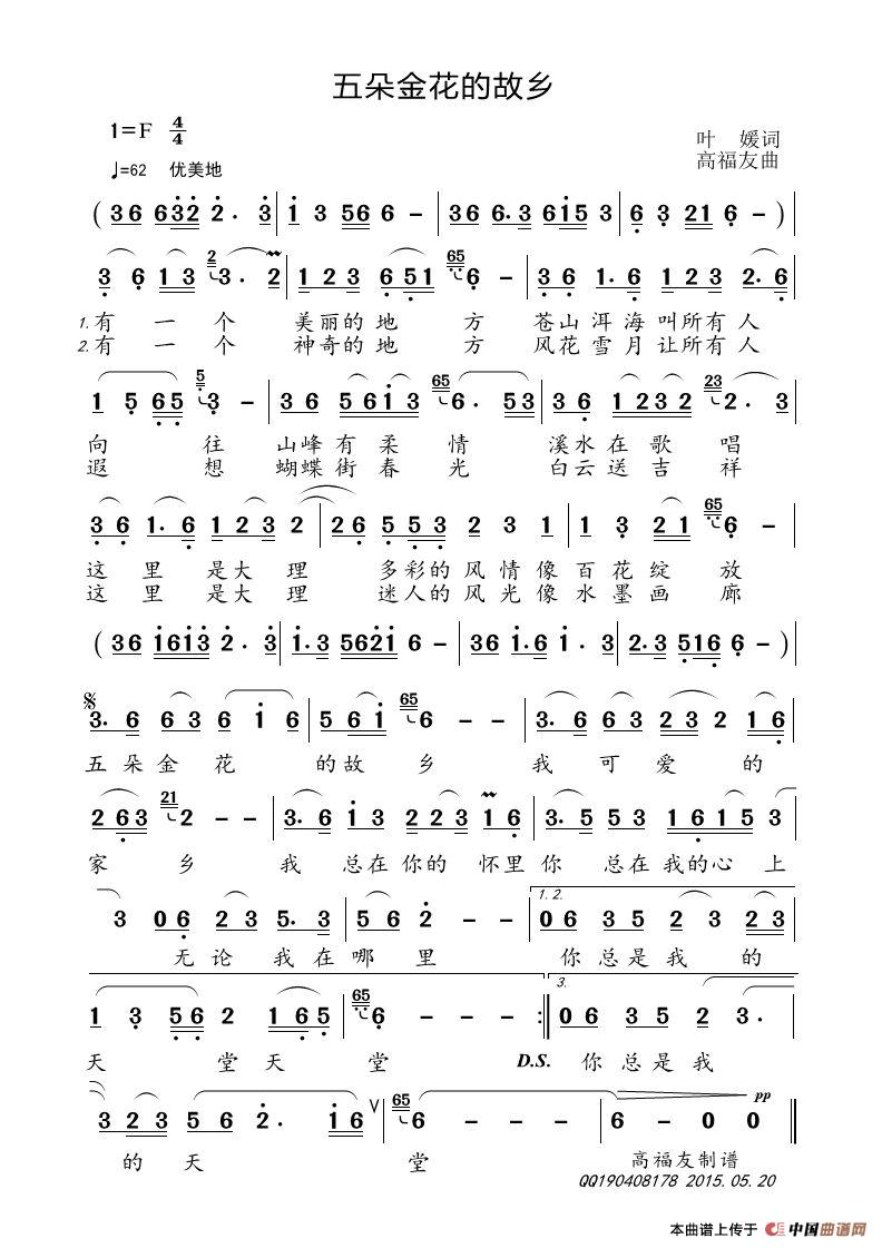高福友曲谱推荐我就是最亮的星山水灵山罗甸等你来(杨厚爽词 高福友曲)期待春天摇一条小船游湖州好梦中国(胡贵春词 高福友曲)长城 梦的地方湘江,我的母亲河梦恋荷乡思亲(高福康词 高福友曲)唱给妈妈的歌(齐鲁小二哥词 高福友曲)梦回海南变心战友情比天高比海宽(刘岐山词 高福友曲)渭河!在我家门前流丹东的姑娘(又名:阿里郎圆舞曲)藏缘山南之歌遥远的爱(赵素杰词 高福友曲)家住黄土塬黄河水车(黎強词 高福友曲)