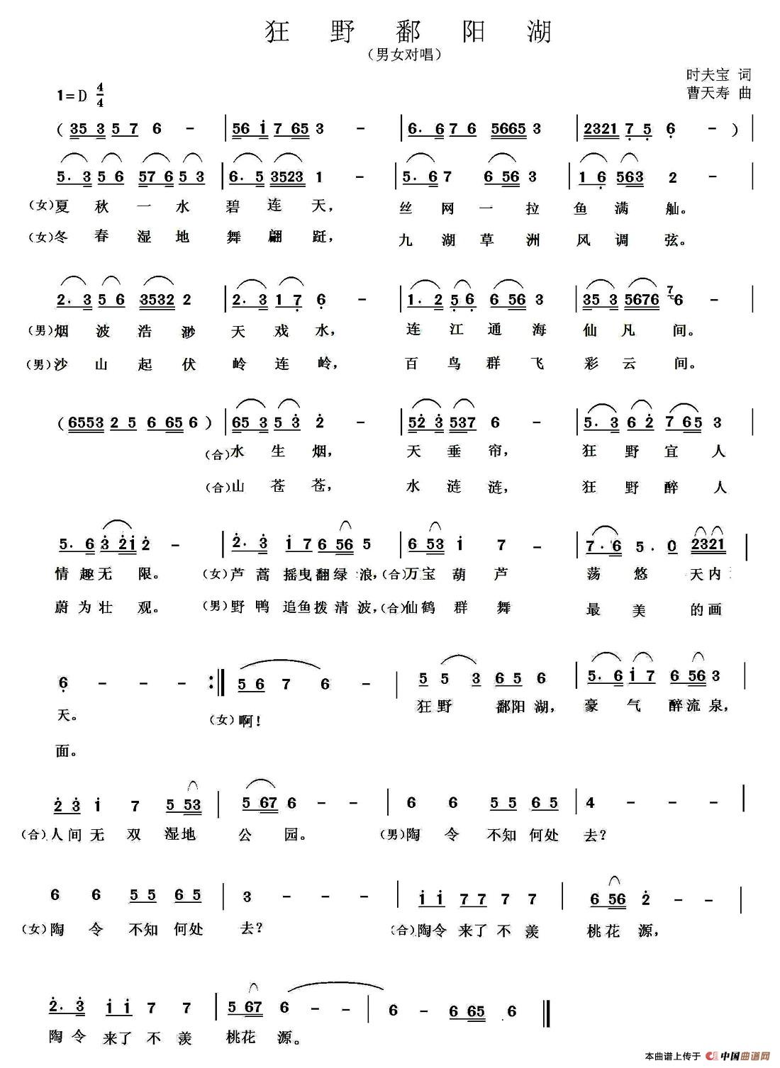 曹天寿曲谱推荐谁带走了我的华年等爱的霓虹雪域兄弟鄱湖风光莫恨天高与地短一片痴情付流水美丽的鄱阳湖(曹杨柳词 曹天寿曲)小河弯弯春来早奈何桥上爱一回阳关新三叠梦之鄱阳湖我在鄱阳等你来世不想再爱你风来雨来你不来我真的爱你(田宇词 曹天寿曲)