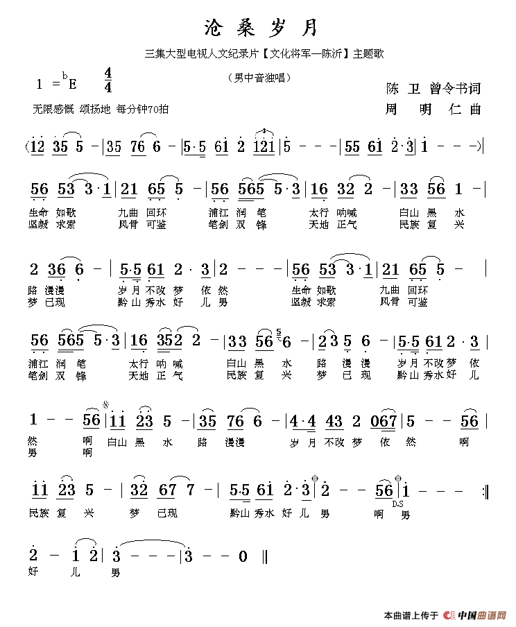 周明仁曲谱推荐和弦行动谱新篇乌江红栌红凤凰山上红军魂(王珂迩演唱)心花为谁开生命壮飞亲亲我的赤水河(北京歌舞团曾勇演唱)流动的梦神奇丹霞山遵义 我心中永远飘扬的旗神奇丹霞山在百姓心上长征颂党旗颂丈量你的足迹一生只等一壶茶风调雨顺的中国(胡宏伟词 周明仁曲)你的城市下霾了吗今夜月亮是否从你梦中走过红姑娘热血丰碑
