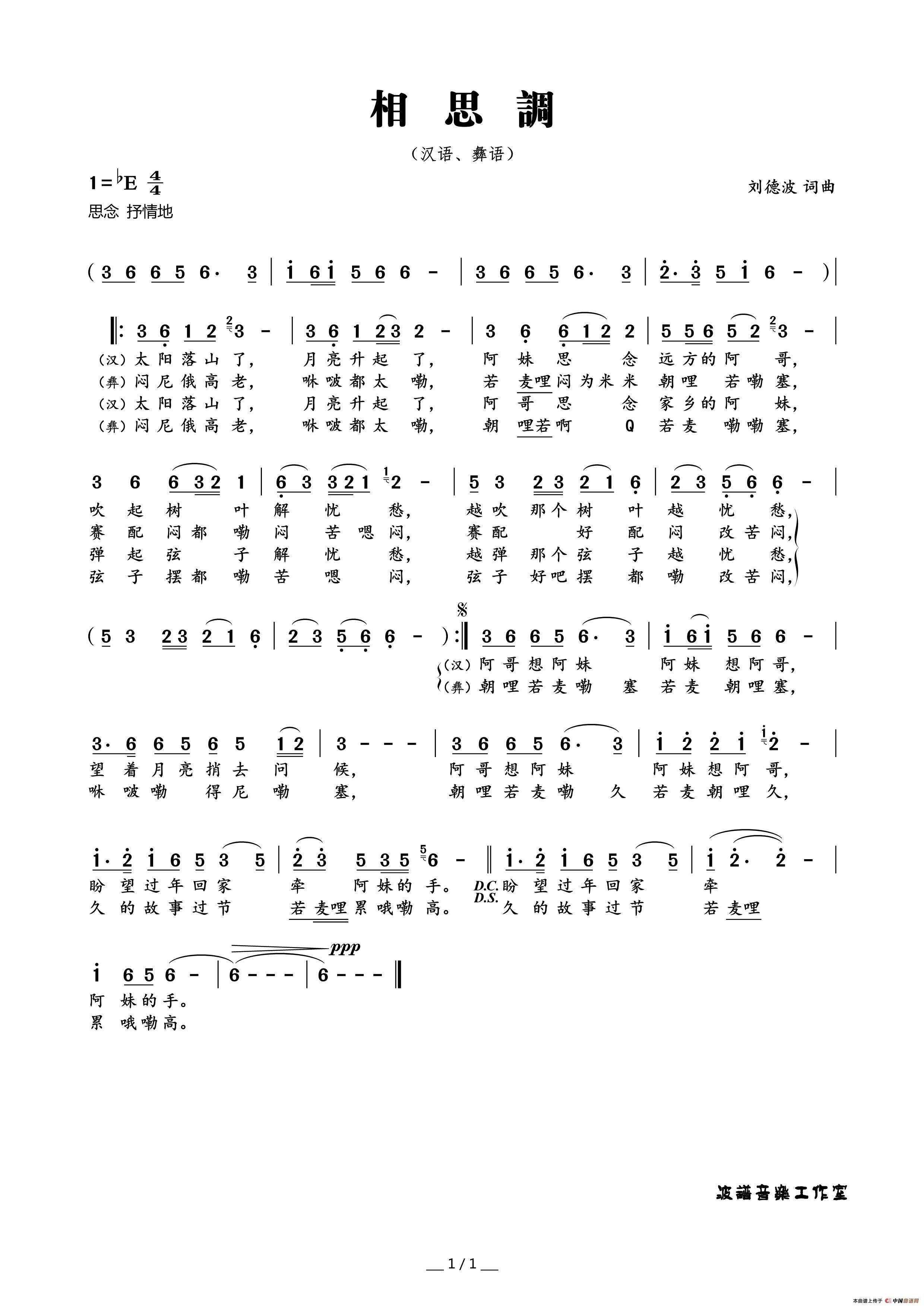 刘德波曲谱推荐你的眼神(闫汝明词 刘德波曲)牧羊姑娘(刘德波词 刘德波曲)最后的思恋阿妹(吉他六线谱+简谱)香格里拉(刘德波词曲)我在施秉等你来你还记得吗(刘德波 词曲)开拓醉花阴·幽曲荷城的月亮(五线谱)雨夜爱情的甜蜜(刘德波 词曲)秋天的泪滴荷城如画谱新章钻戒唇齿相依爱过以后(刘德波词曲)青春校园(周永丽词 刘德波曲)爱的滋味(天成 词,刘德波 曲)今朝有酒今朝醉
