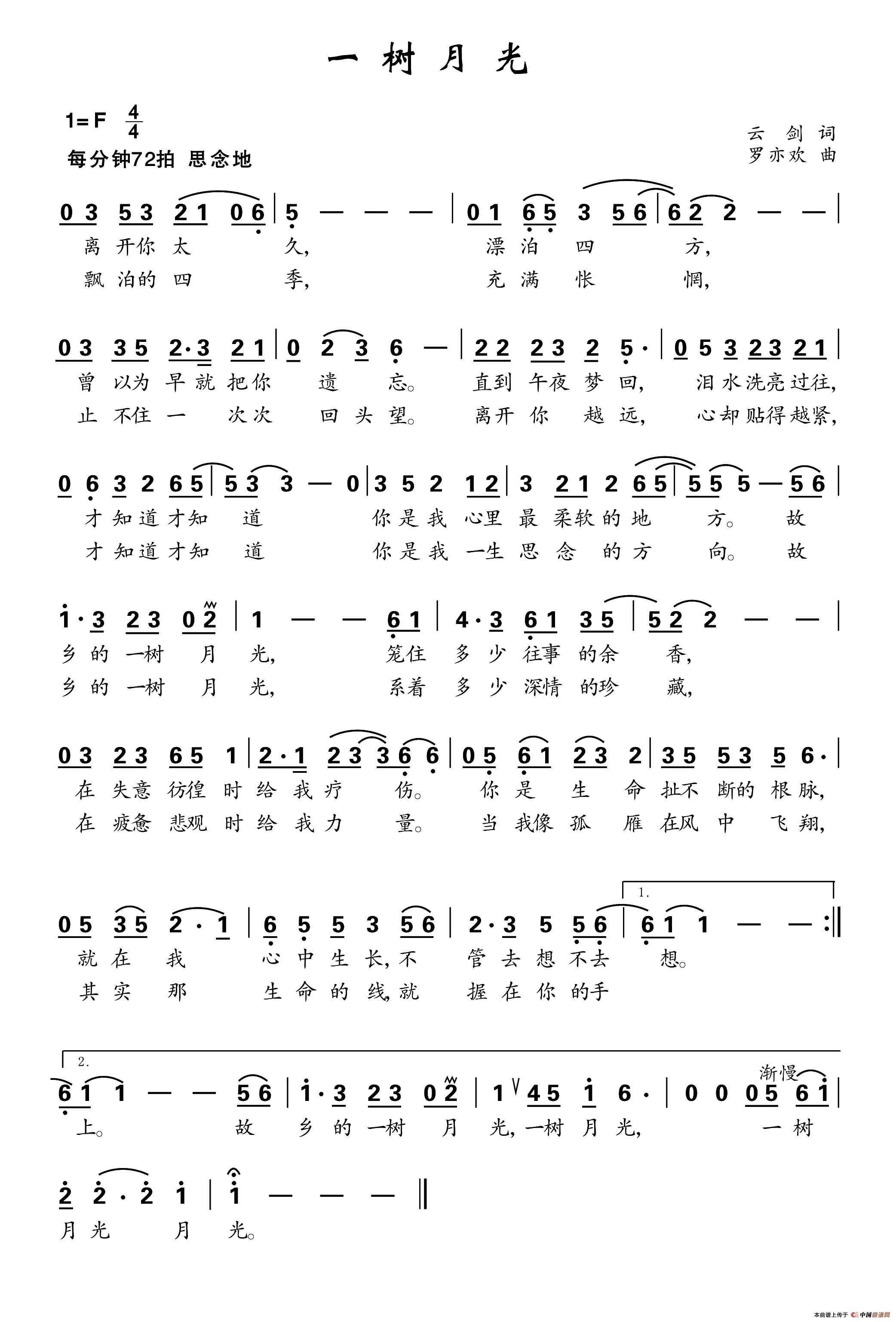 罗亦欢曲谱推荐山寨情歌(黄灿词 罗亦欢曲)高原梦月亮船(陈友善词 罗亦欢曲)一条板凳(施翔词 罗亦欢曲)梦里的兵哥哥(曾聪 建安词 罗亦欢曲)跟着月亮回故乡(叶方义词 罗亦欢曲)你领着中国走进了春天陪你变老莲塘月韵圆圆的月弯弯的河(彭子柱词 罗亦欢曲)亲亲娘酒梦的深处是故乡(刘向辉词 罗亦欢曲)格桑花与小卓玛(翁琳词 罗亦欢曲)读你千遍我给你的安慰担当写给时间的信赞红船铭记回家过年(宋小明词 罗亦欢曲)