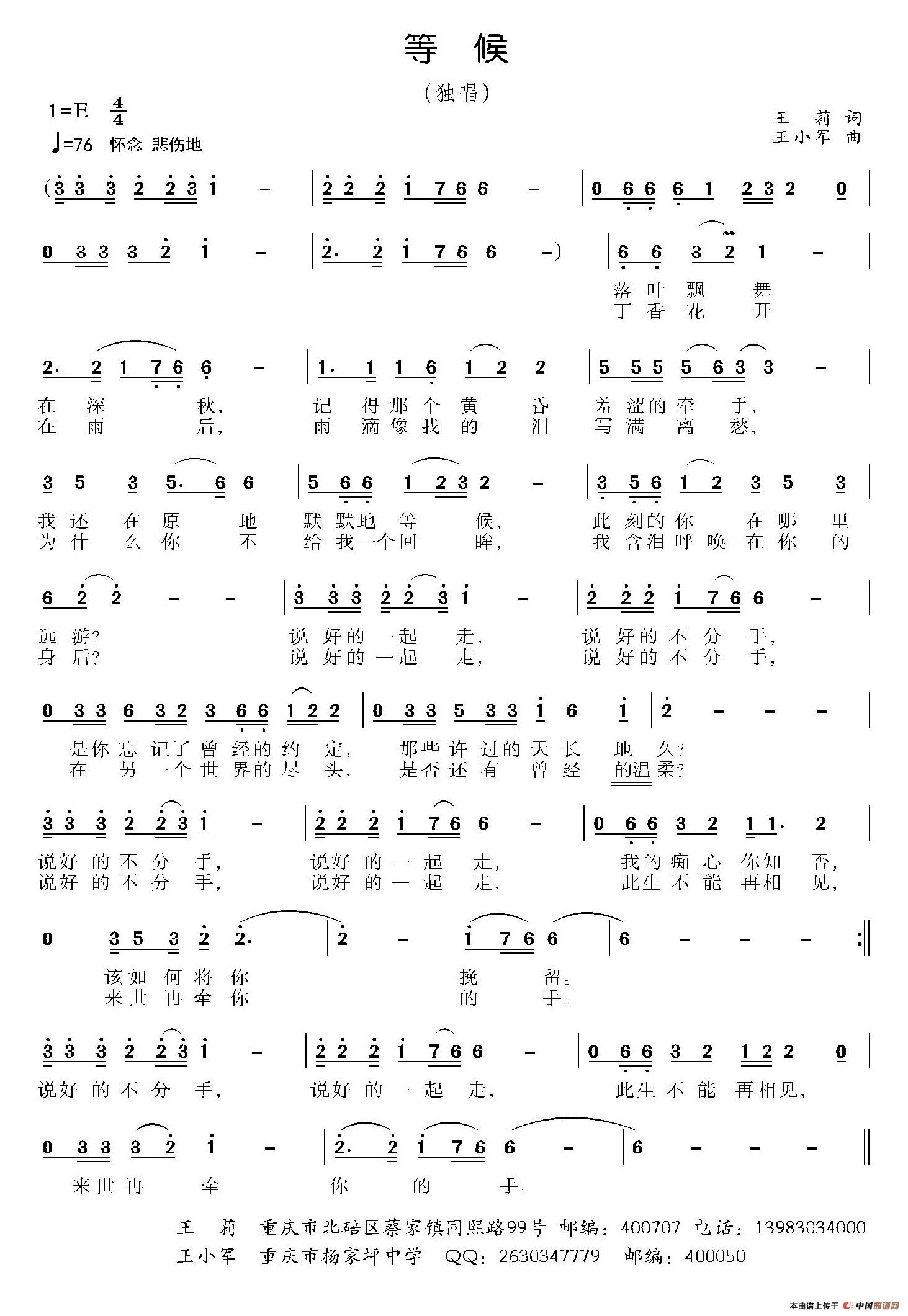 王小军曲谱推荐跟着春风走给妹妹的童话母爱无声(赵国伟词 王小军曲)乡村教师(刘国生词 王小军曲)放飞新的希望大树的宝宝多(余莠词 王小军曲、少儿歌曲)给D探索之歌(李幼容词 王小军曲)鲜活的心跳离家(邓丹心词 王小军曲)中国新时代(黄秀峰词 王小军曲)春的快递小白鹅(张宾普词 王小军曲)乡情(王莉词 王小军曲)摘甜果( 少儿歌曲)小蜗牛与小蚯蚓(少儿歌曲)河西走廊(王泓维词 王小军曲)洞庭雨英文字母音标巧记歌(少儿歌曲)噘嘴巴(二)(少儿歌曲)