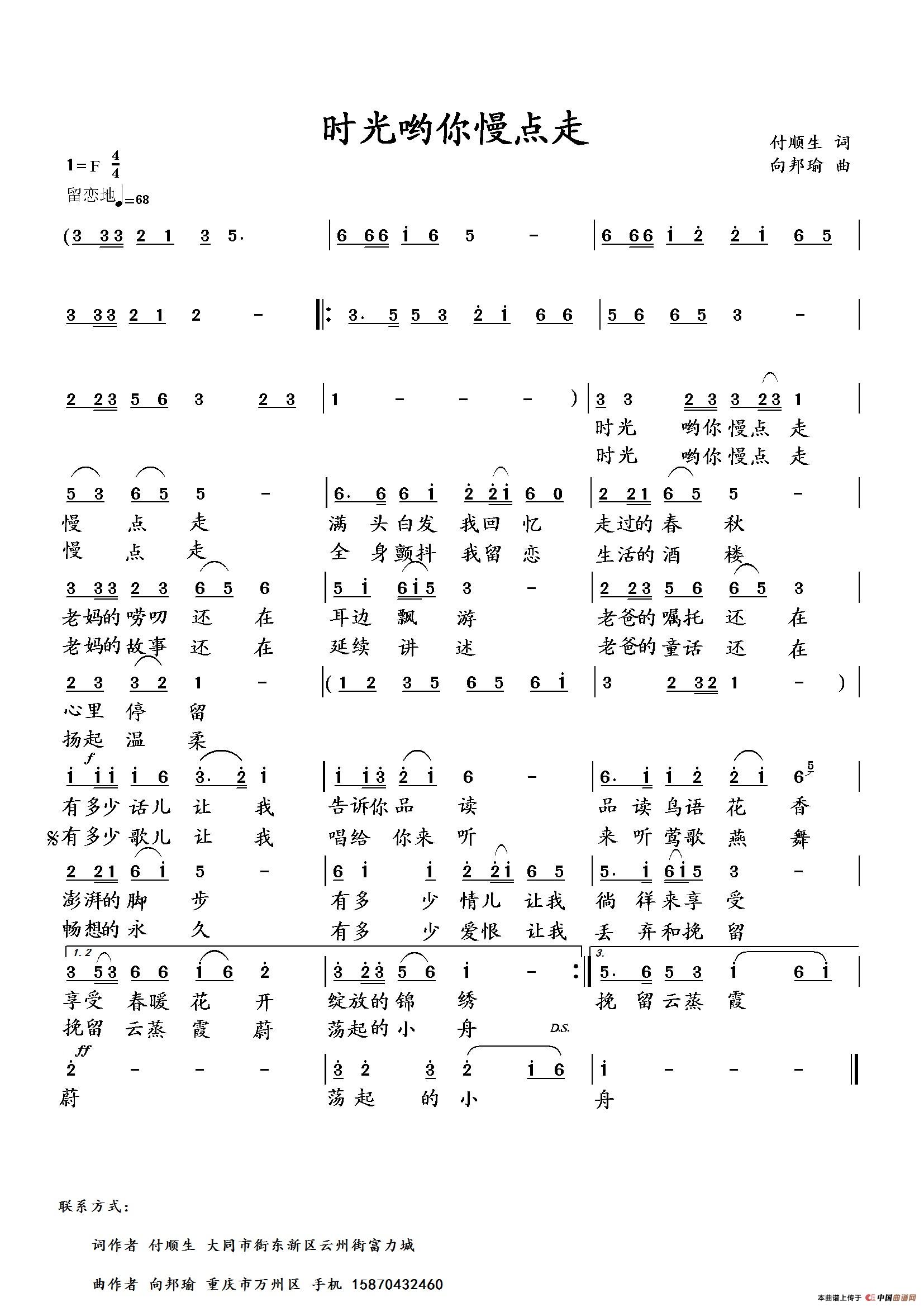 向邦瑜曲谱推荐爱你那时候(刁长育词 向邦瑜曲)异乡秋思曲牵着你的幸福一起走(萧思林词 向邦瑜曲)最美三峡之巅蓝色天堂(李庆文词 向邦瑜曲)屈子投江怨爱上卓玛姑娘大漠铁军天下雄(萧思林词 向邦瑜曲)我的五桥故乡南县罗文花海新歌三峡酒(何荣国词 向邦瑜曲)牵手到永久栀子花开啊乡景浓生命至上 活着真好乡村婚礼曲我爱月亮 中国的月亮悬崖上的树(萧思林词 向邦瑜曲)等你在陌上花开有缘有爱我们是一家(范修奎词 向邦瑜曲)父亲的脊梁(萧思林词 向邦瑜曲)