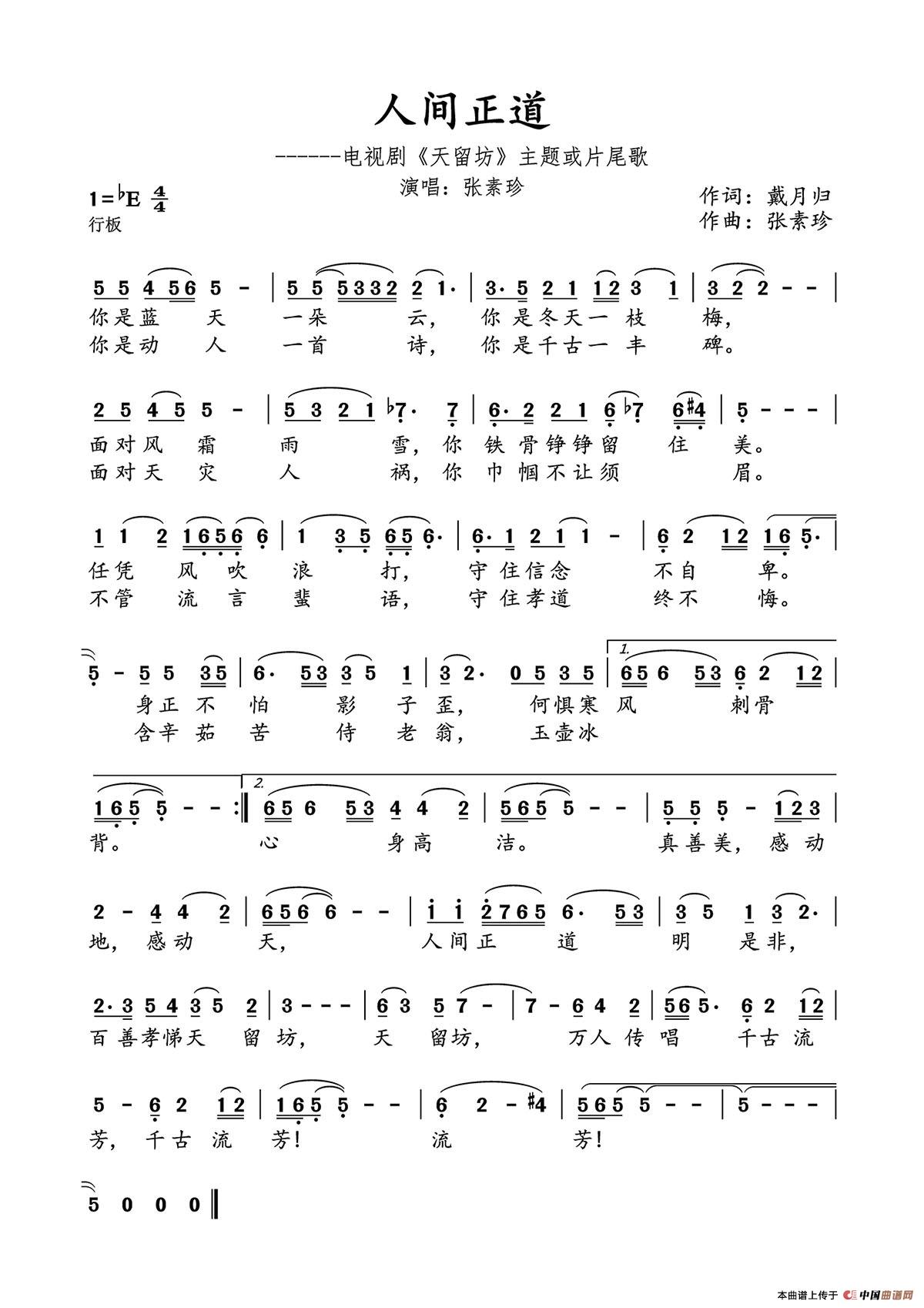 人间正道(电视剧《天留坊》插曲)相关五线谱