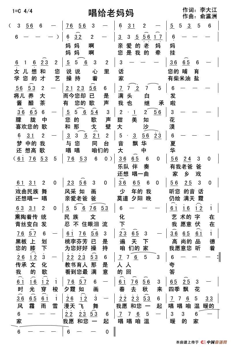 俞瀛洲曲谱推荐亮剑出鞘(原创正版)情牵北大荒翠湖我们知青月思(唐超词 俞瀛洲曲)想问蓝天借那白云朵朵校友歌妈妈的泪花(钱岳旻词 俞瀛洲曲)小康歌友妹妹的心沁园春—母校六十华诞浣溪沙·中医传四海送清凉小康歌友群之歌快跳、快唱我的祝福七夕、月伴日我的祝福(李大江词 俞瀛洲曲)翠湖妹与樱桃都甜美(原创正版)