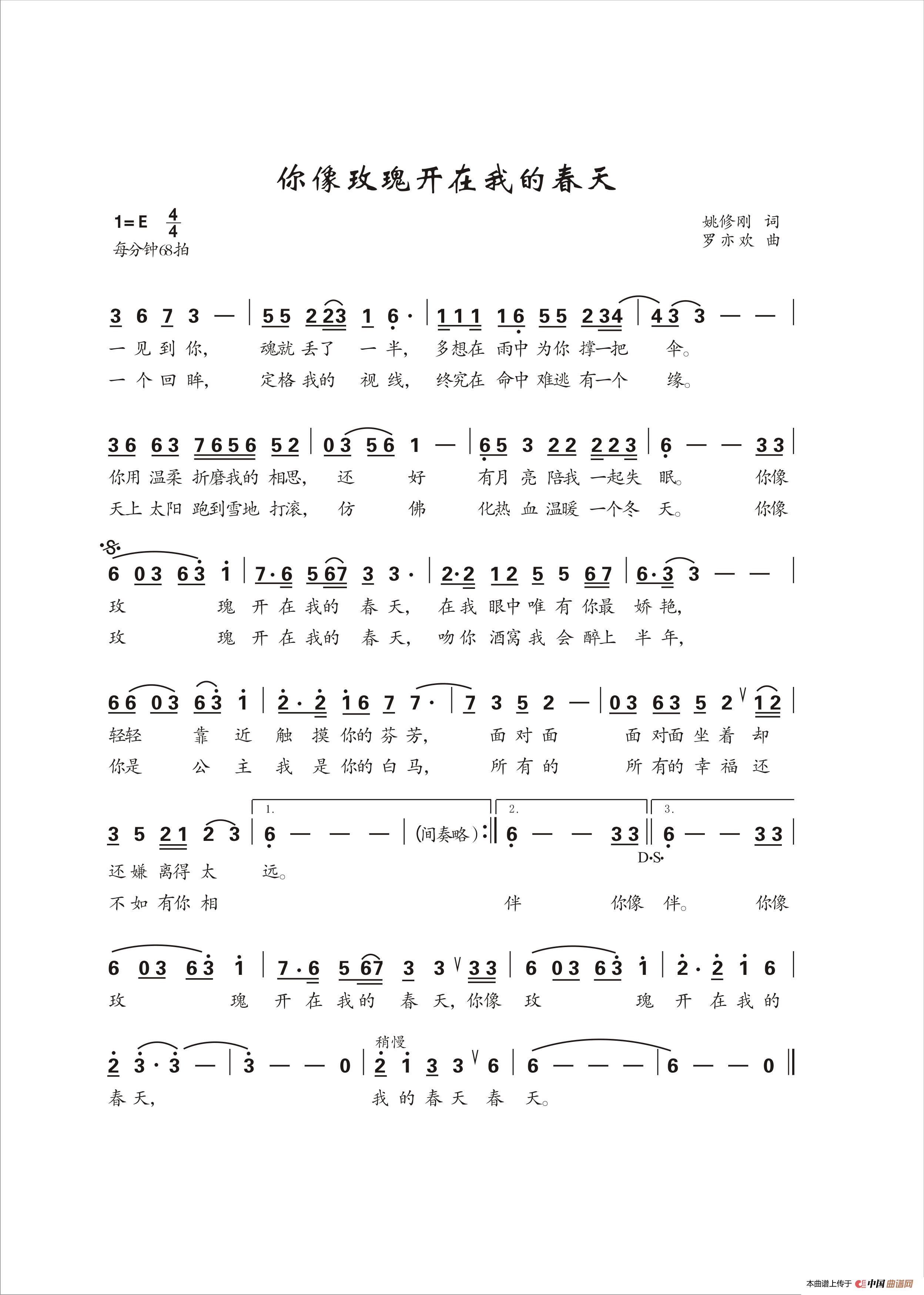 罗亦欢曲谱推荐啊,客家女大埔谣(刘婧词 罗亦欢曲)在春天的故事里想你(赵大国词 罗亦欢曲)梦里的兵哥哥(曾聪 建安词 罗亦欢曲)雪域天堂(李官明词 罗亦欢曲)心中的歌谣(戴海霞演唱)读你千遍阿妹一曲请茶歌亲亲娘酒回报(罗晓航词 罗亦欢曲)月光下的山歌(阿姆话 演唱)月亮船(陈友善词 罗亦欢曲)一路春风梦客家油菜花儿香(叶方义词 罗亦欢曲)祖国一树杨梅半树红喊妈妈圆圆的月弯弯的河(戴海霞)土楼神韵你的故事(胡宏伟词 罗亦欢曲)