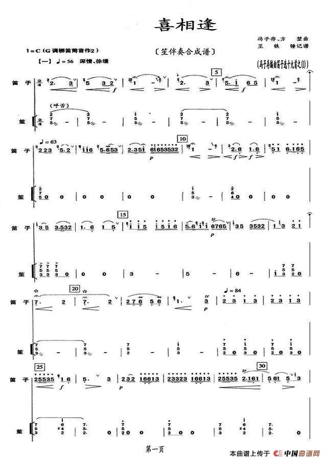 喜相逢(笙伴奏合成谱)相关五线谱