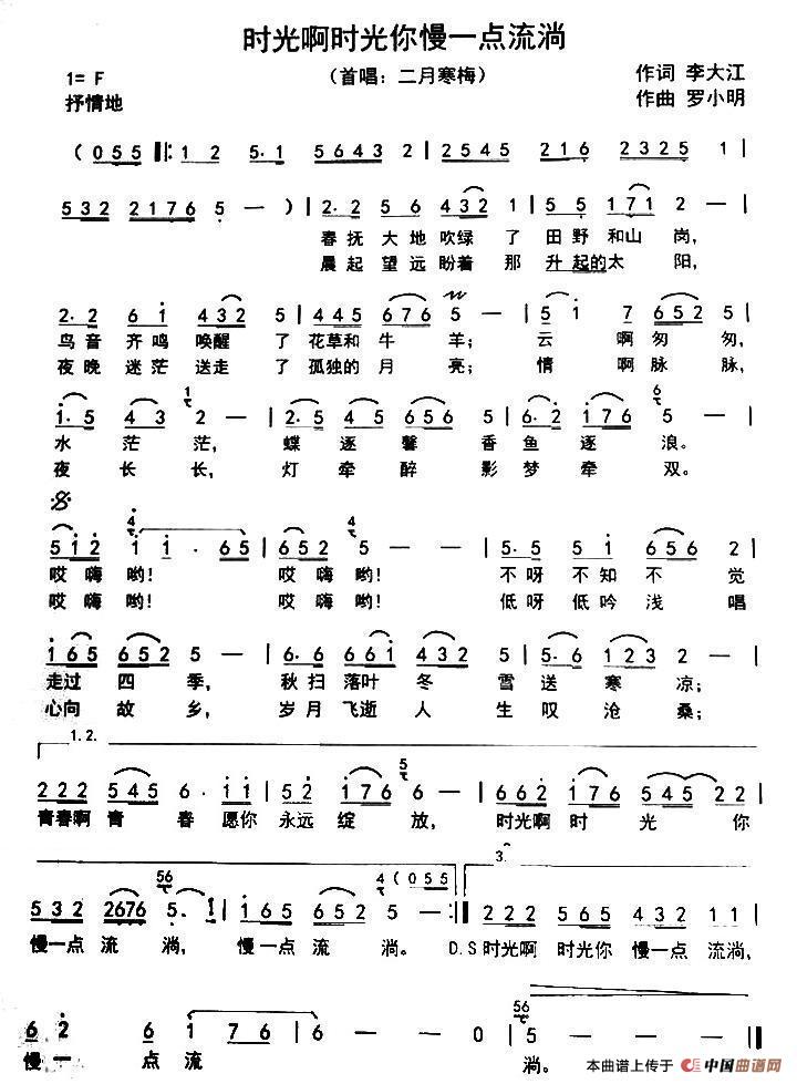 时光啊时光你慢一点流淌相关五线谱