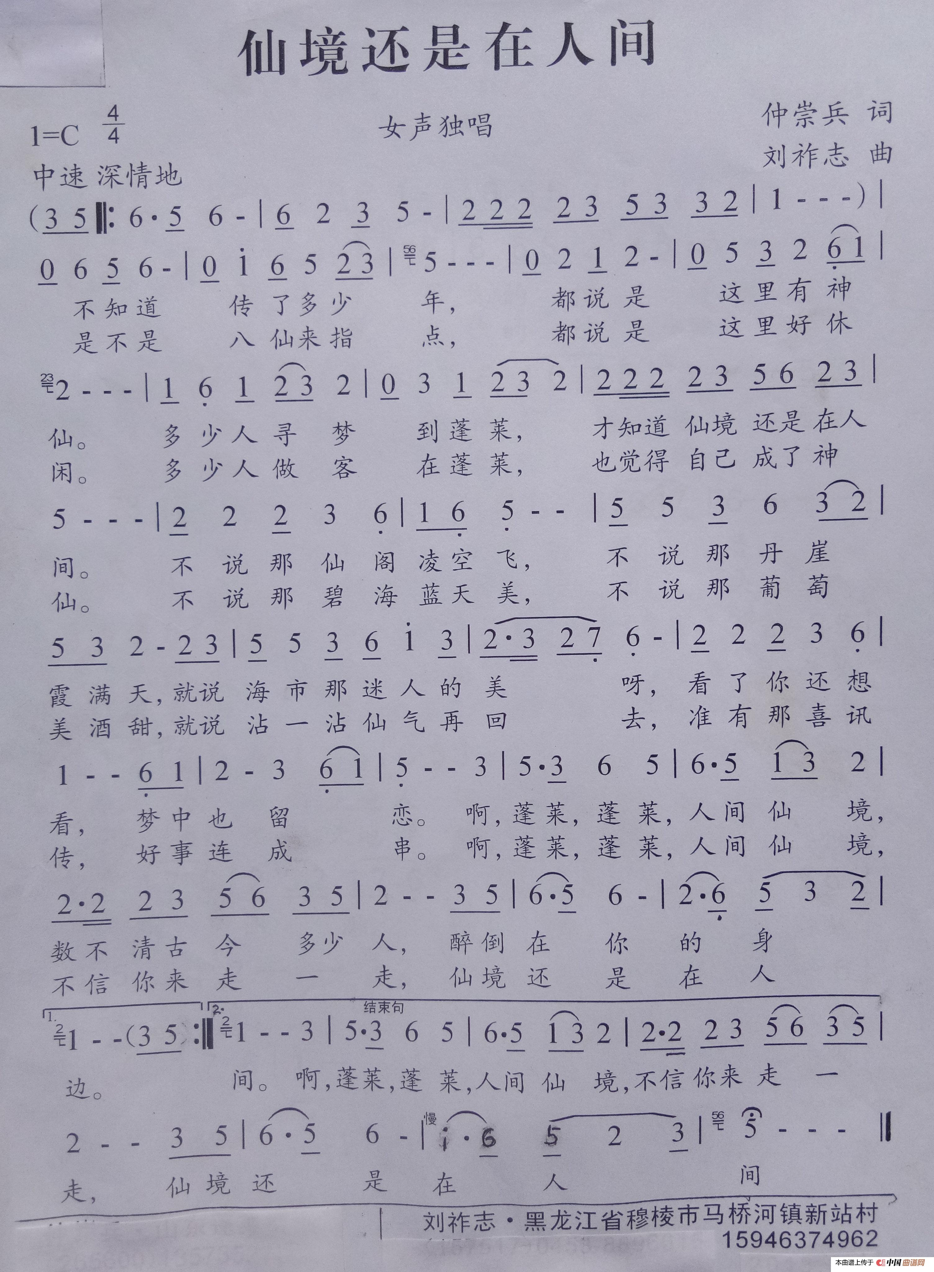 刘祚志曲谱推荐知足长乐(刘祚志词曲)乡村恋歌(刘祚志词曲)戈壁仙境(词曲 刘祚志)江汉风(梁和平词 刘祚志曲)牛爸爸(徐秀红词 刘祚志曲)小宝宝(词曲 刘祚志)小山鹰(刘祚志词曲)长白山情怀(词曲 刘祚志)期盼(词曲 刘祚志)站在景山望故宫(刘祚志词曲)咯嗒嗒(刘祚志词曲)中东铁路历史文化穆棱陈列馆之歌(刘祚志 词曲)长白山 天池水((陈福利词 刘祚志曲)夸夸你长白山(王明芳词 刘祚志曲)大秦岭(李铮词 刘祚志曲)有一条小河(韩雪词 刘祚志曲)望太行(肖宝龙词 刘祚志曲)月儿香(黄小名词 刘祚志曲)等你(李玉龙词 刘祚志曲)丢失的月亮(陈兴玲词 刘祚志曲)