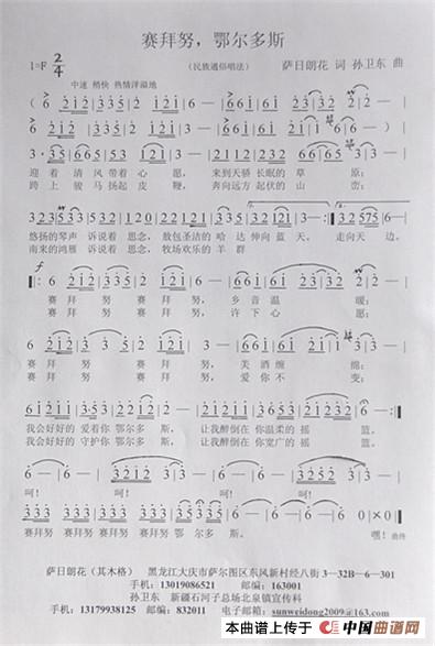 孙卫东曲谱推荐为什么我心里装的全是你(刘兰芳词孙卫东曲)编织梦想(萨日朗花词孙卫东曲)蝴蝶飞飞(黄小名词孙卫东曲)咏鹅·登幽州台歌(古诗孙卫东曲)心上的古丽(潘嘉明漠阳词孙卫东曲)千年的马蹄后朋友走好(孙卫东词曲)千古芳华(甘霖词 孙卫东曲)快乐女孩(朱聪颖词 孙卫东曲)不朽的胡杨2(胡德全词孙卫东曲)思念的泪儿珠凝成歌(仇荣祥汪满词)萨日朗花(其木格词孙卫东曲)青青天堂(张三里词孙卫东曲)老师的微笑(孙卫东词曲)中国故事(杜思雨词 孙卫东曲)新湘江谣(崔吉熹张景川词孙卫东曲)为你点赞我的战友(耕夫词孙卫东曲)放歌叶尔羌(甘霖词孙卫东曲)新年祝福歌(刘兰芳词 孙卫东曲)漂泊的人儿(张锦水词刘兰芳孙卫东曲)