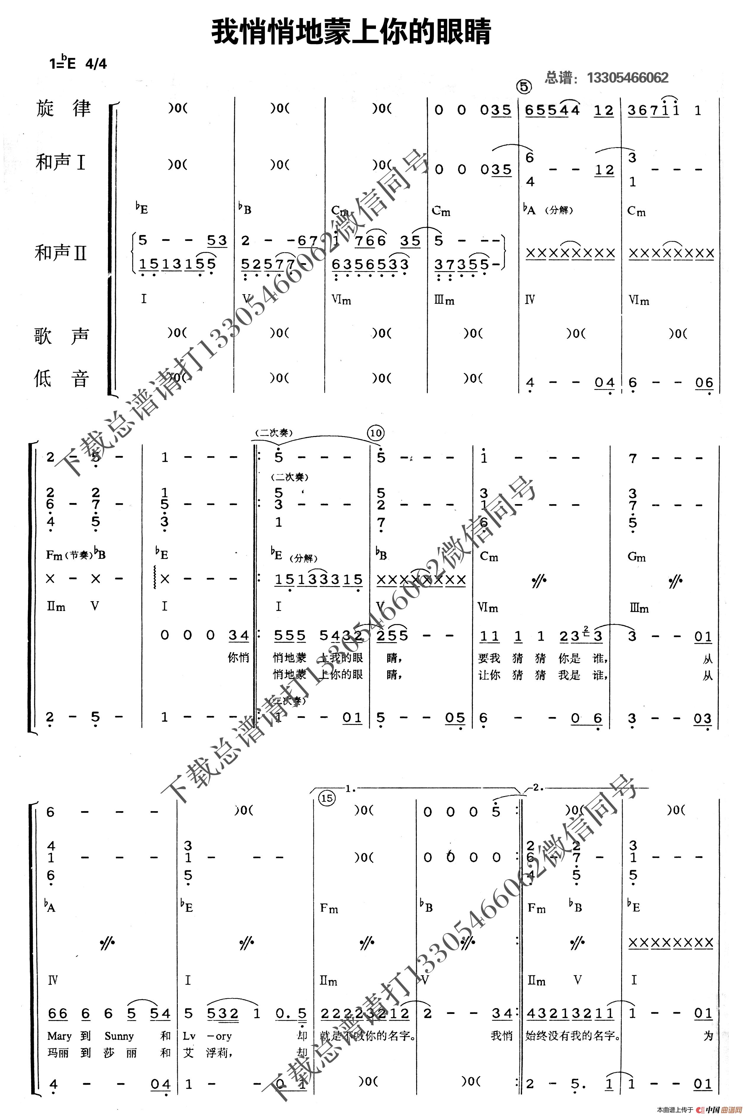 我悄悄地蒙上你的眼睛(乐队总谱)相关五线谱