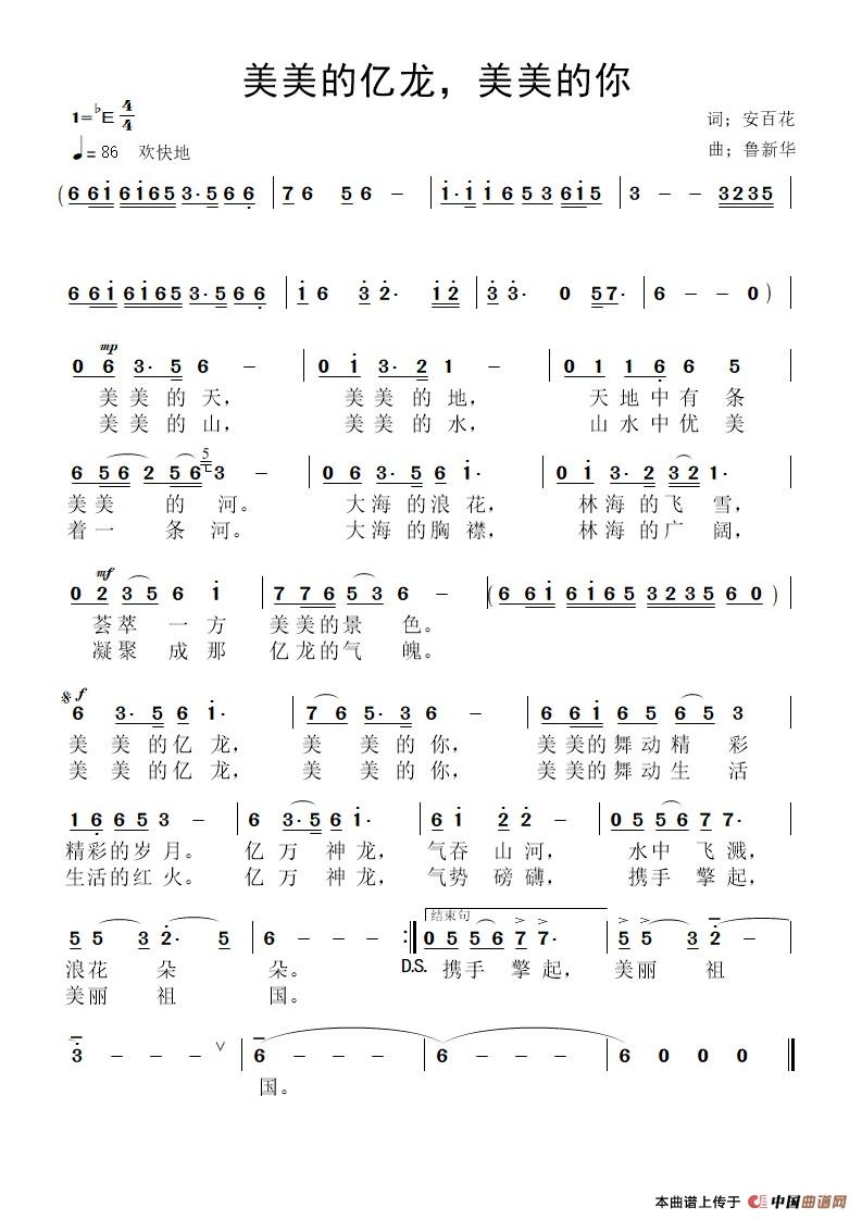 鲁新华曲谱推荐当过知青的人写在天山的名字英才的摇篮最美就是这个样云南的月亮不一样(萧思林词 鲁新华曲)请到谯城走一走(刘显兴词 鲁新华曲)爱唱歌的女支书军人的肩膀(李庆文词 鲁新华曲)筑岛男儿新时代的老人新风采把你好好爱一场月亮之都喝酒就要喝茅台飞吧,静安鸿雁向北方(孙书林词 鲁新华曲)多彩贵州,醉美遵义(赵大为词 鲁新华曲)南方的海(袁晨光词 鲁新华曲)共工之歌梦在大兴安岭上日月亮歌喉(池宝柱词 鲁新华曲)
