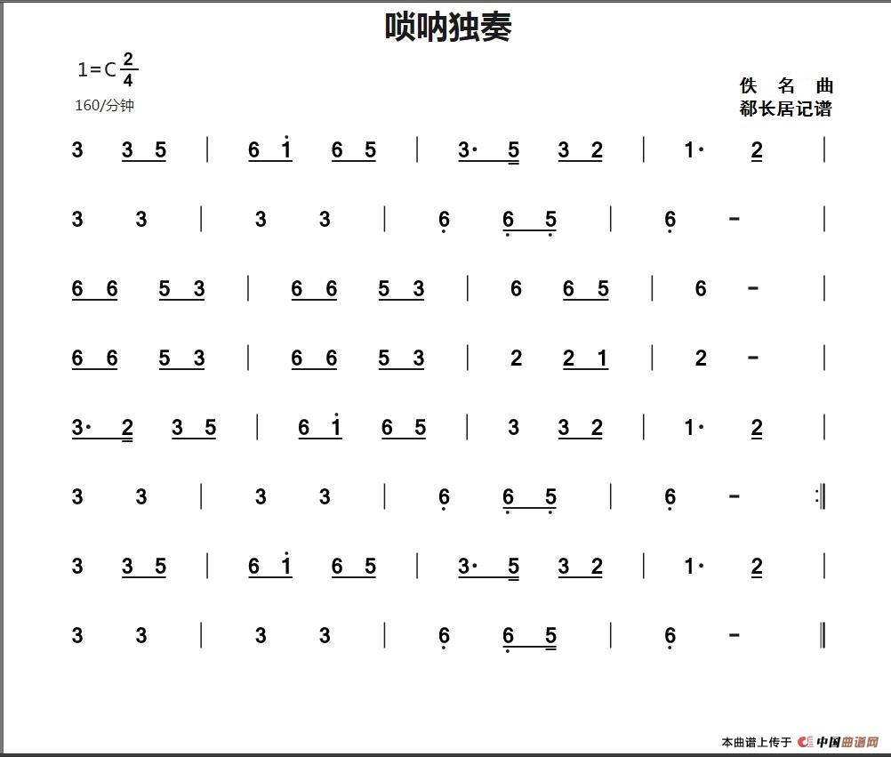 唢呐独奏相关五线谱