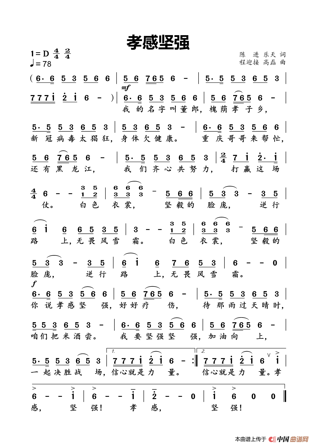 孝感坚强(陈进 乐天词 程迎接 高磊曲)相关五线谱