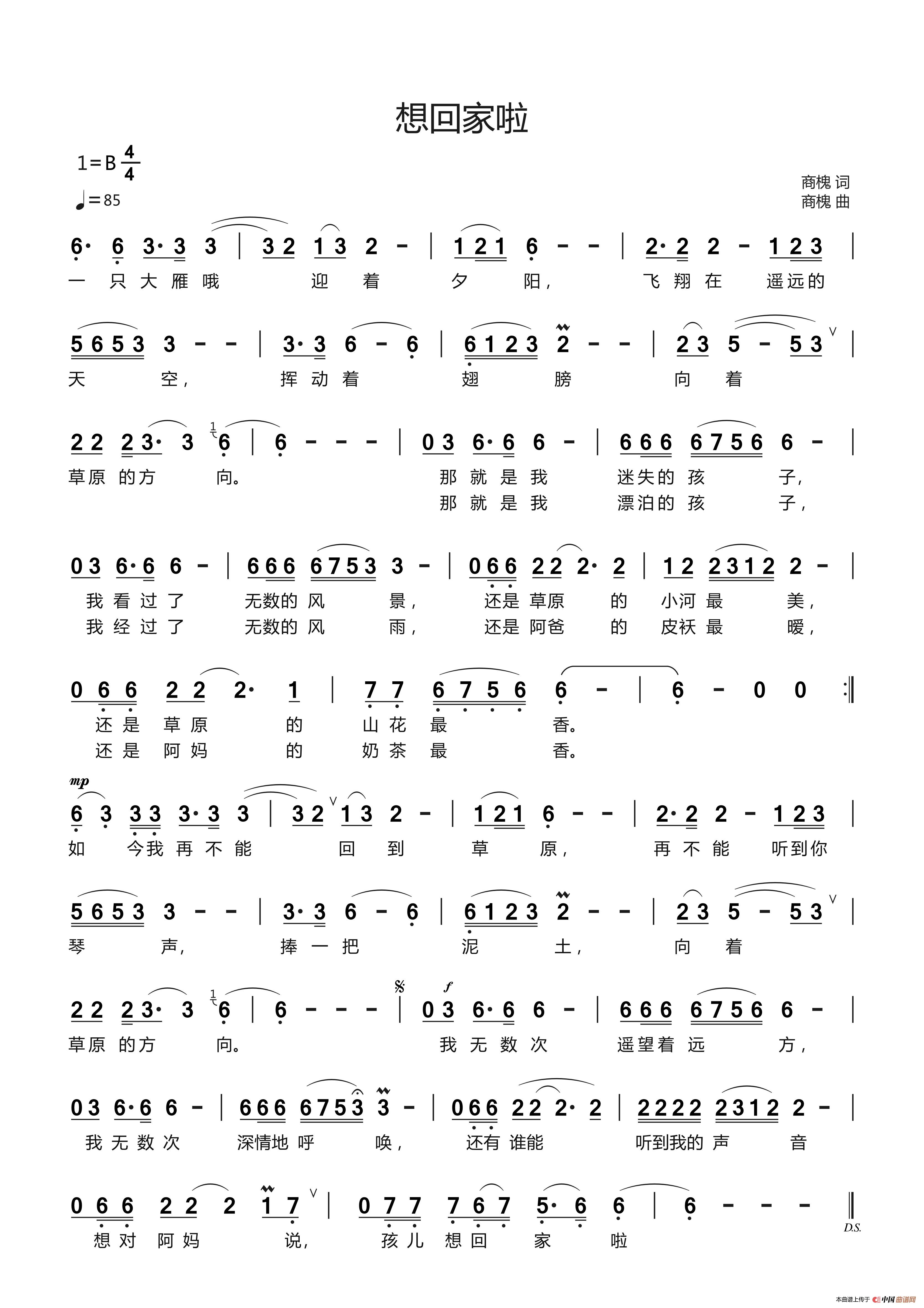 想回家啦相关五线谱