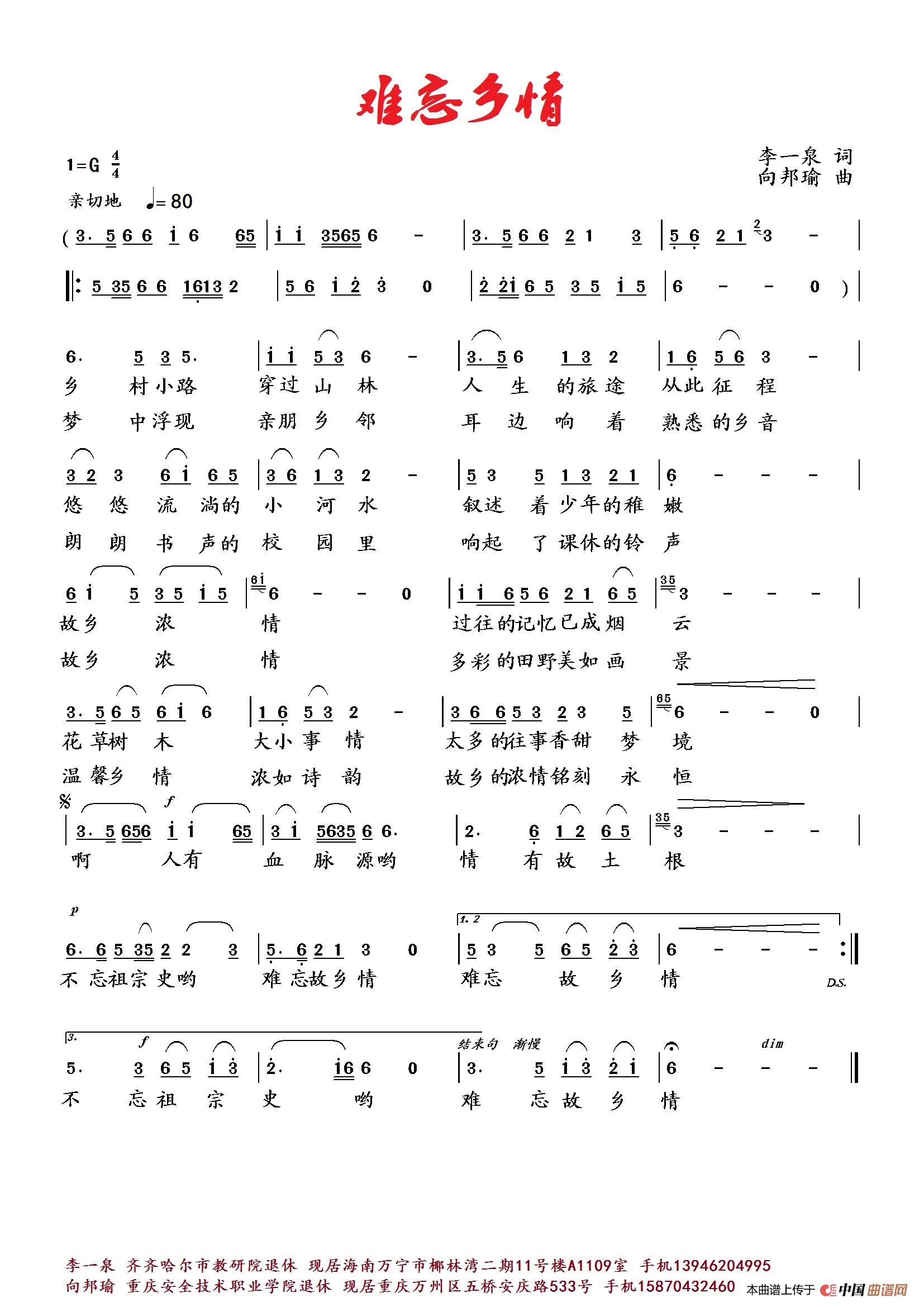 向邦瑜曲谱推荐青春天仙湖白衣战士之歌陶辛荷韵(翟光平词 向邦瑜曲)红颜易老情难却(萧思林词 向邦瑜曲)妈妈的唠叨是首歌(李建厚 萧思林词 向邦瑜曲)相思越千年幸福家园澡堂随想曲(何荣国词 向邦瑜曲)泉交河里欢乐的歌乡村婚礼曲珍惜缘分(萧思林词 向邦瑜曲)好男人(刘岐山词 向邦瑜曲)中华我的家(何荣国词 向邦瑜曲)英雄的背影(为纪念汶川地震十周年而作)唱起牧歌想草原溜溜的康巴溜溜的卓玛(萧思林词 向邦瑜曲)荷田农庄仙桃村咏(臧辉先词 向邦瑜曲)火火火想念毛泽东 再唱东方红爱一场(萧思林词 向邦瑜曲)