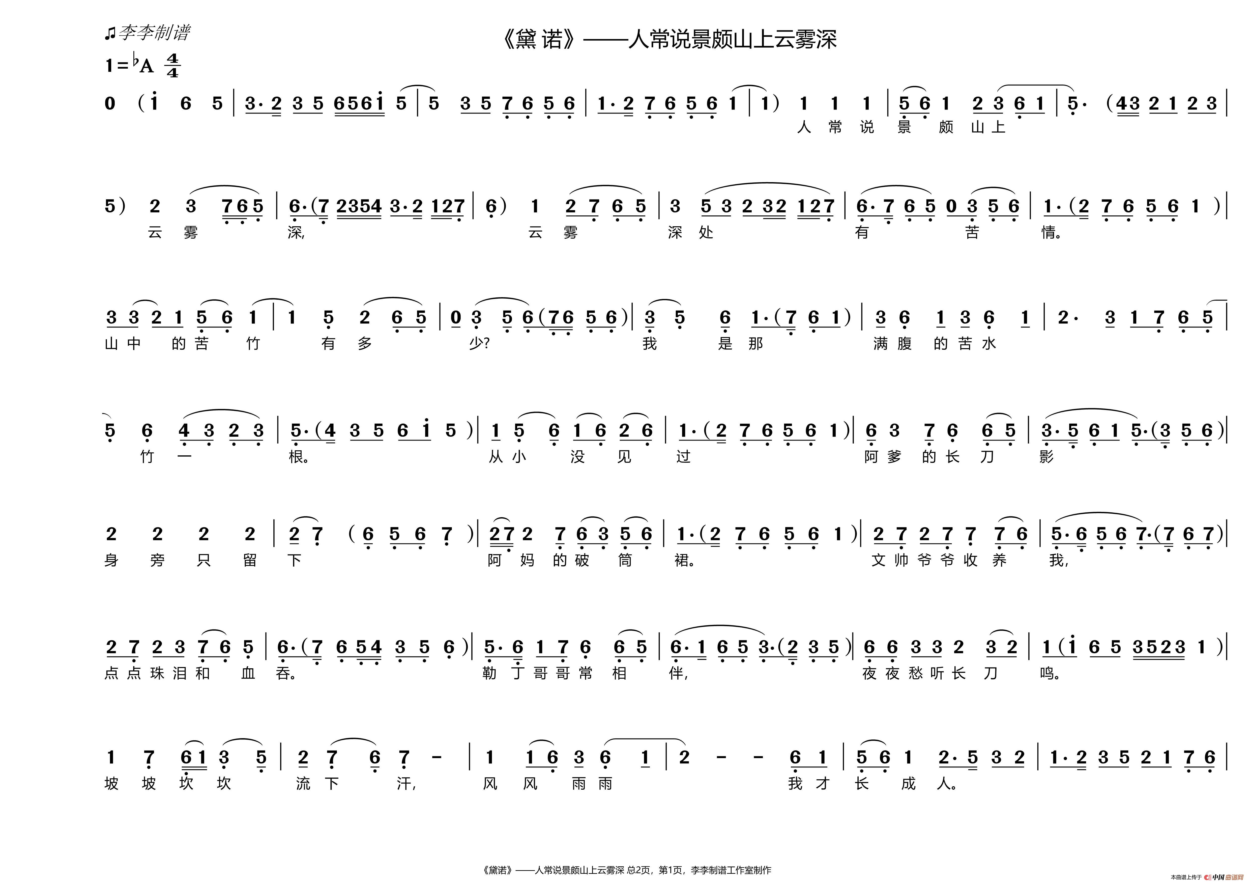 《黛诺》人常说景颇山上云雾深相关五线谱
