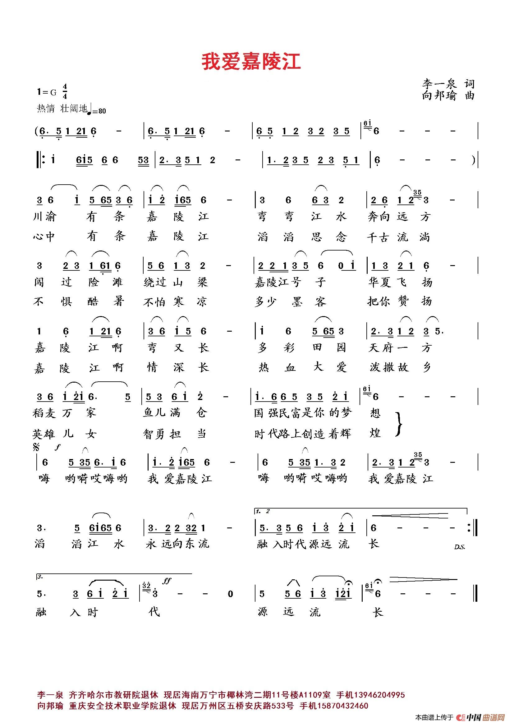 向邦瑜曲谱推荐我的五桥故乡我的根在渠县又见雪花飘(萧思林词 向邦瑜曲)婆媳情(王剑钟词 向邦瑜曲)咏荷莲草原的月亮(萧思林词 向邦瑜曲)抱一抱渠江恋歌(李一泉词 向邦瑜曲)邻居之歌(高治雄词 向邦瑜曲)曾经沧海(萧思林词 向邦瑜曲)泰山彩石溪给逆行者的歌傻傻的爱再见吧追星的脚步幸福停留在那个下午(宋青松词 向邦瑜曲)紧紧拉着爱人的手秋色竞风流仙人掌(何荣国词 向邦瑜曲)梦回故乡冬日梅花颂