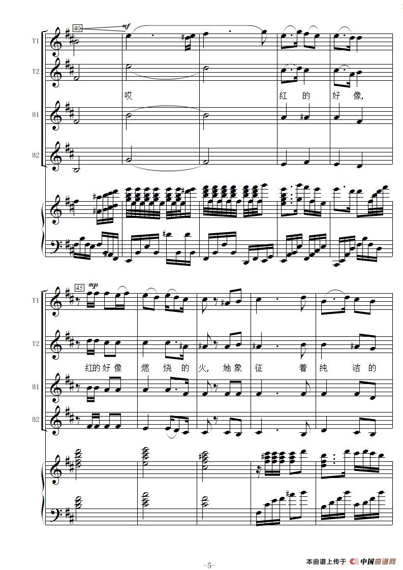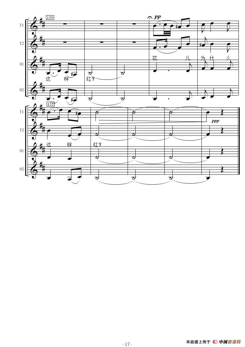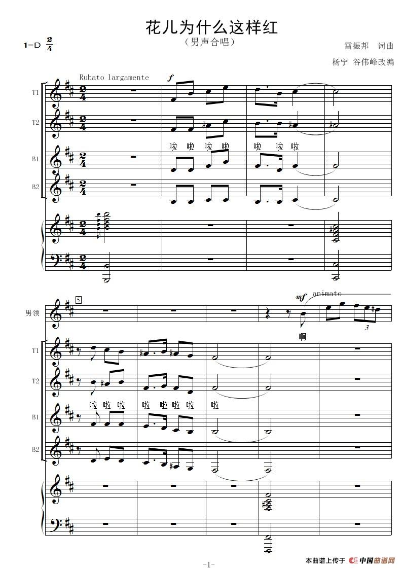 花儿为什么这样红-线谱(男声合唱)相关五线谱