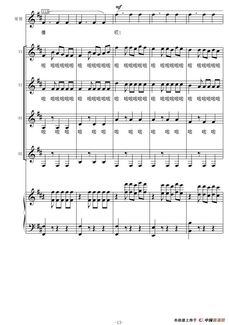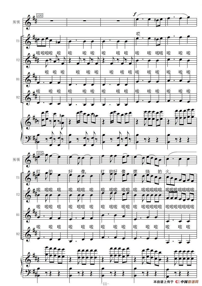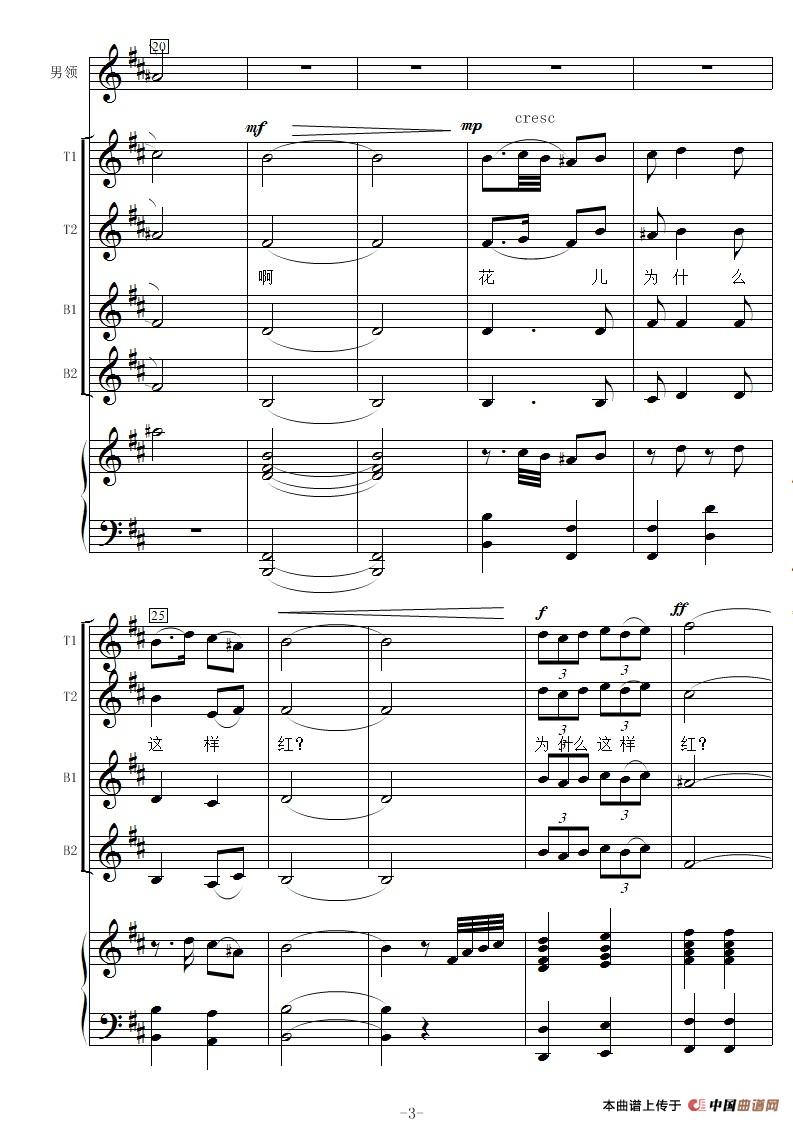 花儿为什么这样红-线谱(男声合唱)