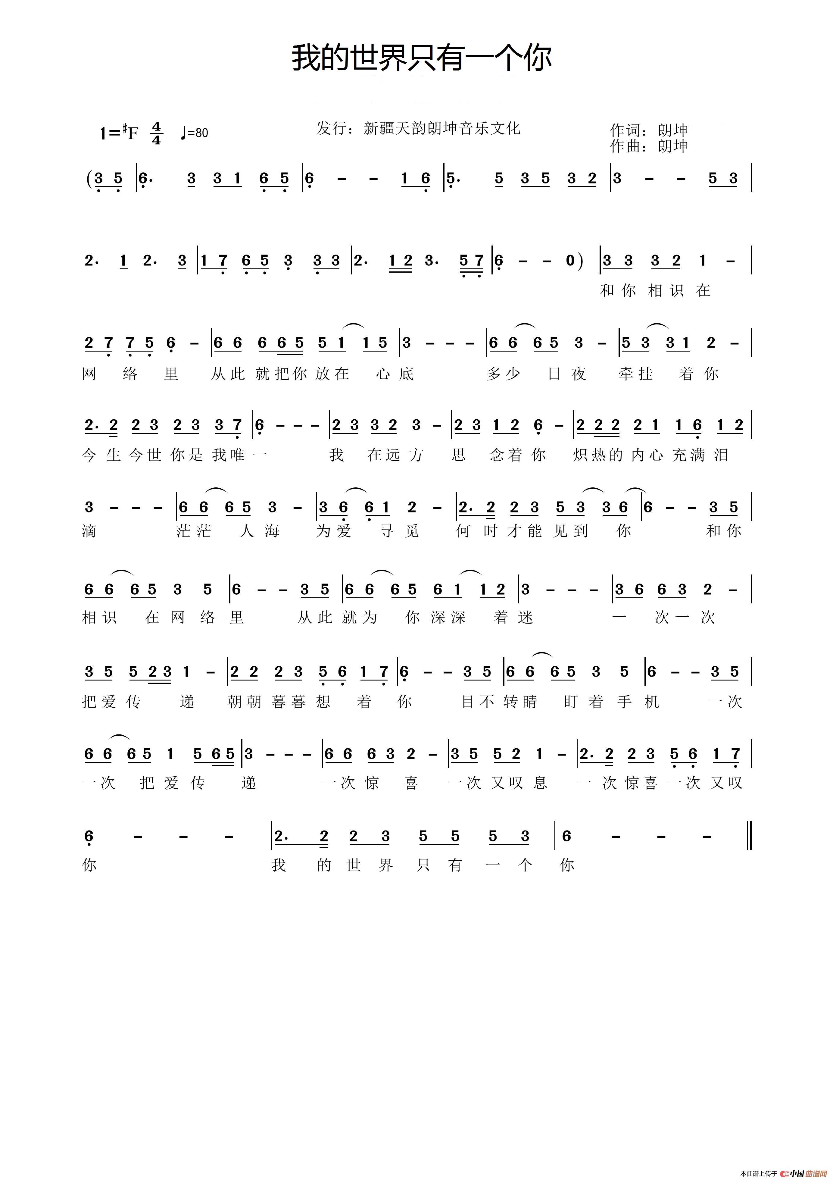 我的世界只有一个你(朗坤原名(高永胜))相关五线谱