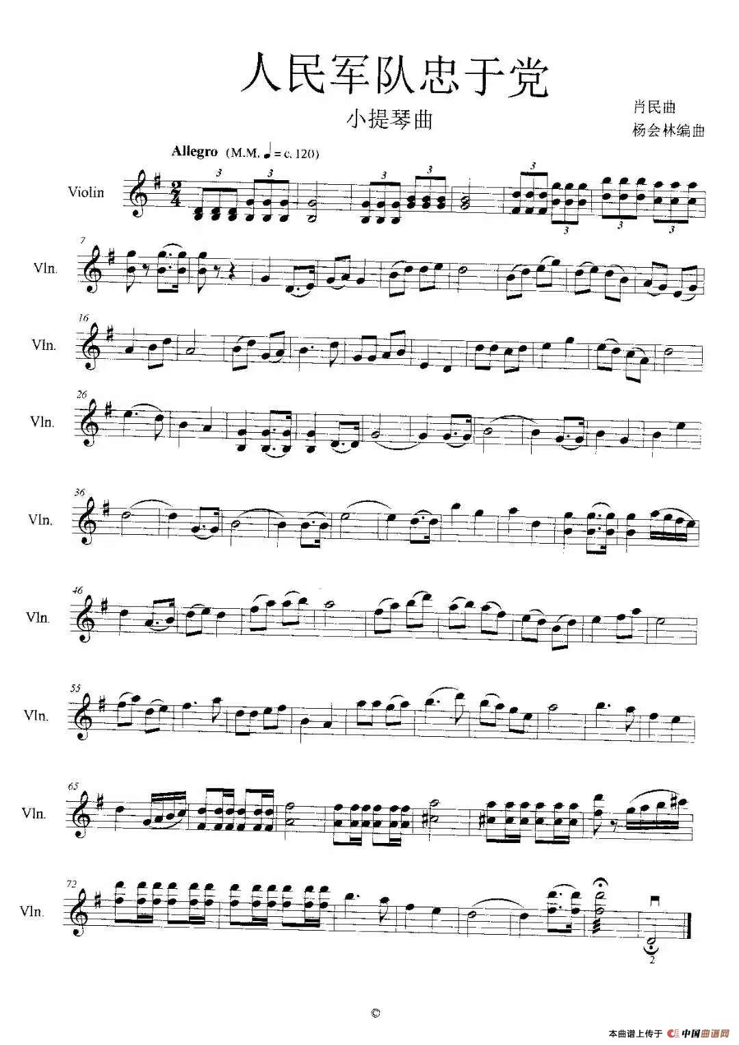 - 心中的歌献给解放军(小提琴弓法及双音练习曲)
