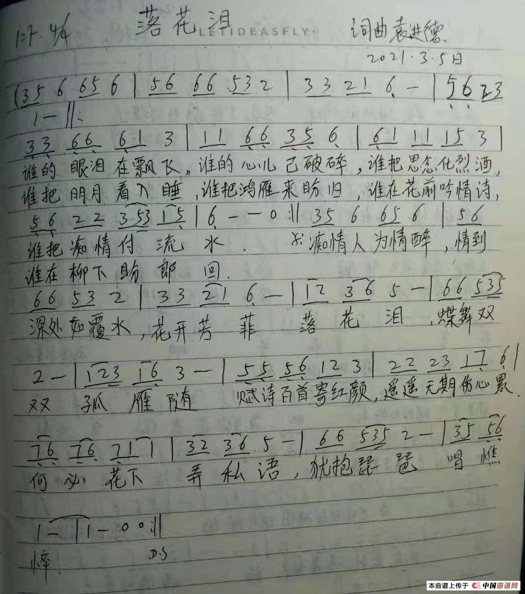 落花泪相关五线谱