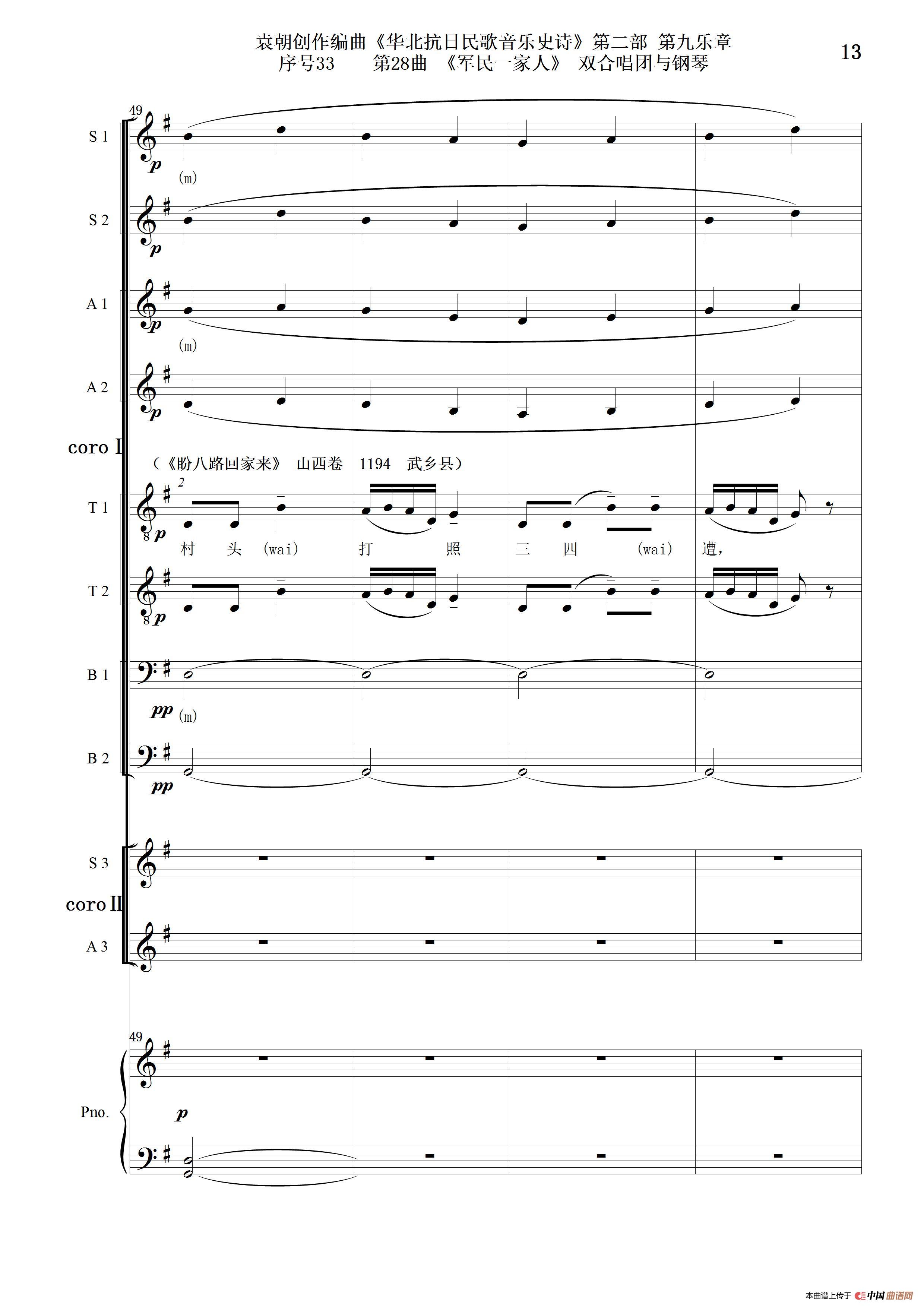 - 序号13第11曲《我劝我男人参加八路军》女中音、男高音领唱 双合唱团与钢琴