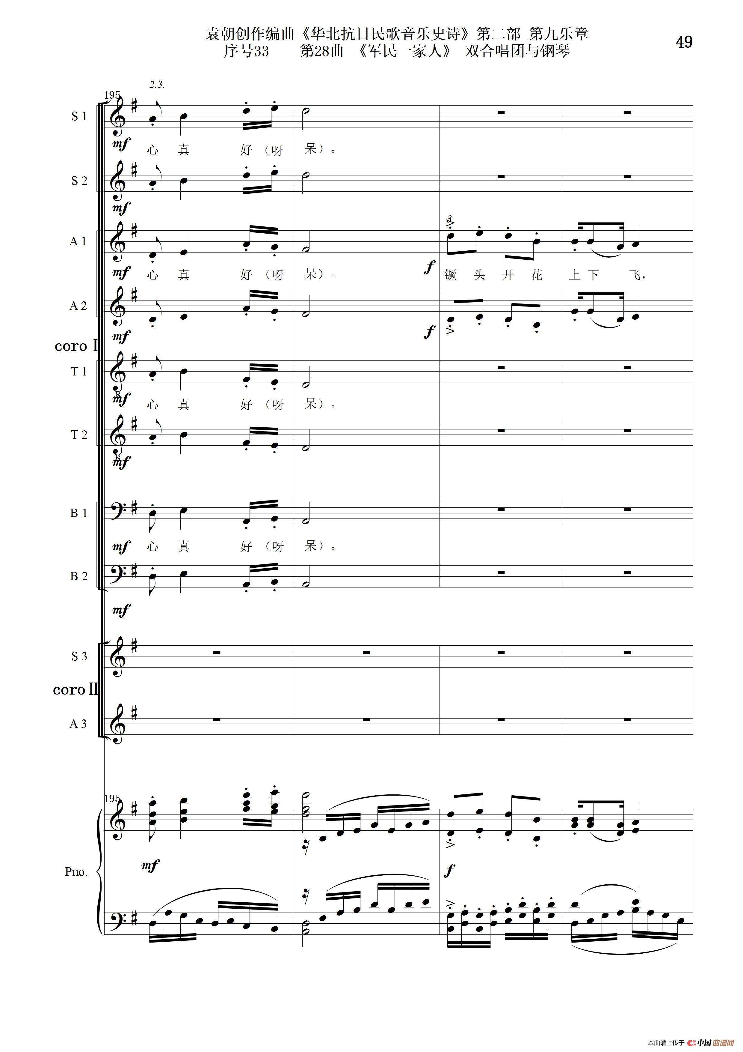 - 序号59第52曲《军民上山去开荒》三合唱团与钢琴