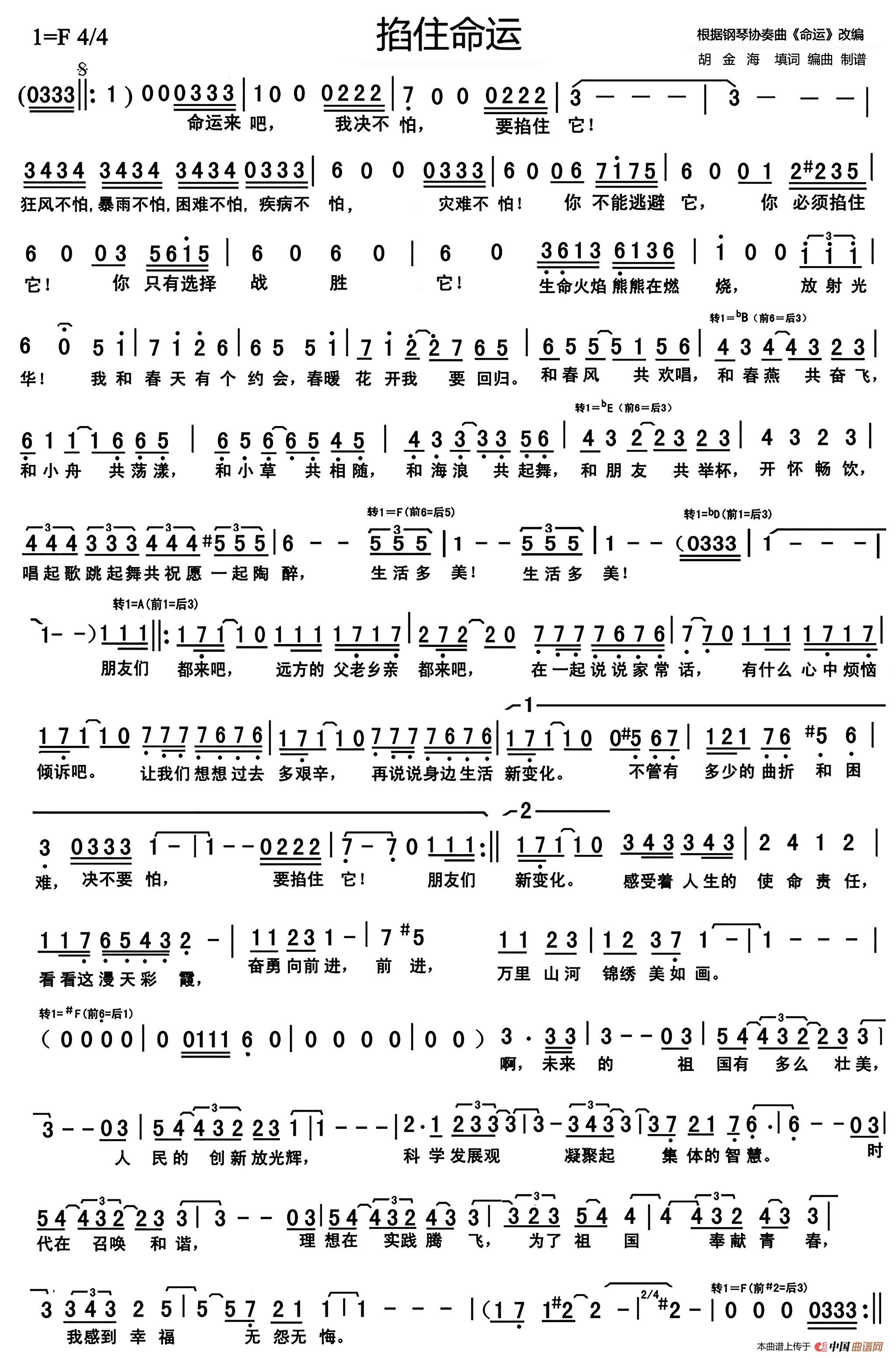 掐住命运(根据钢琴协奏曲改编)相关五线谱