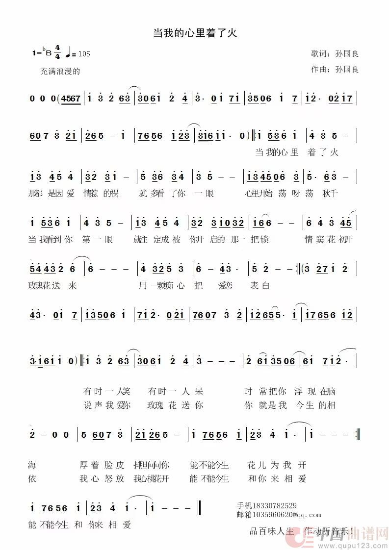 当我的心里着了火相关五线谱