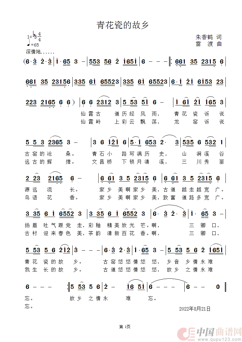 雷渡曲谱推荐相拥明天梦在飞翔祝你生日快乐浪漫月夜远方的思念幸福的家渡口情思广益情我的好妈妈啊喇稻花香我不想思念扬起远航的风帆难忘如梦的那个秋扬起远航的风帆天地人和何必千年等一回故乡情(季夏词 雷渡曲)我们的家乡变了样蜂花之恋大漠胡杨