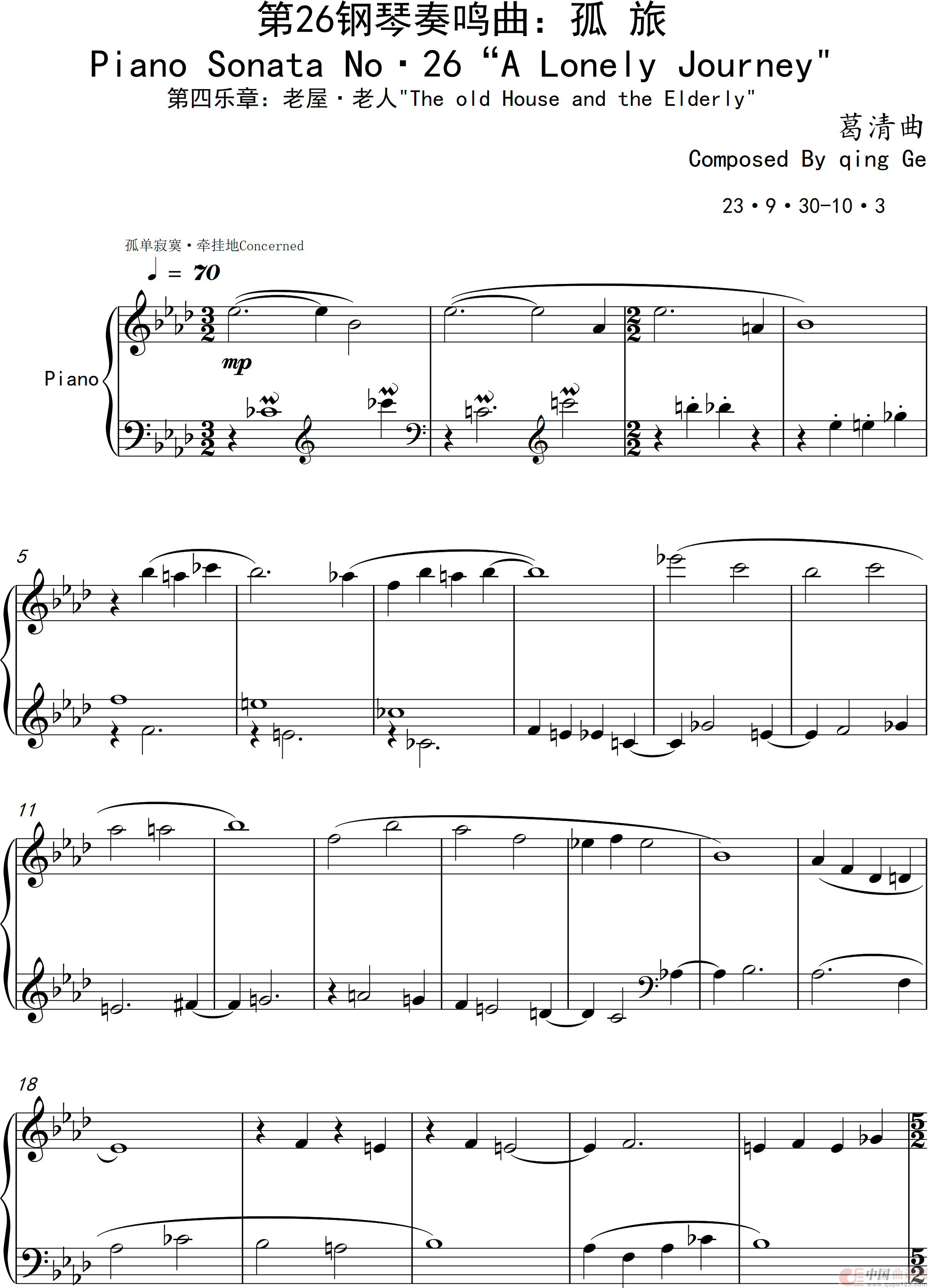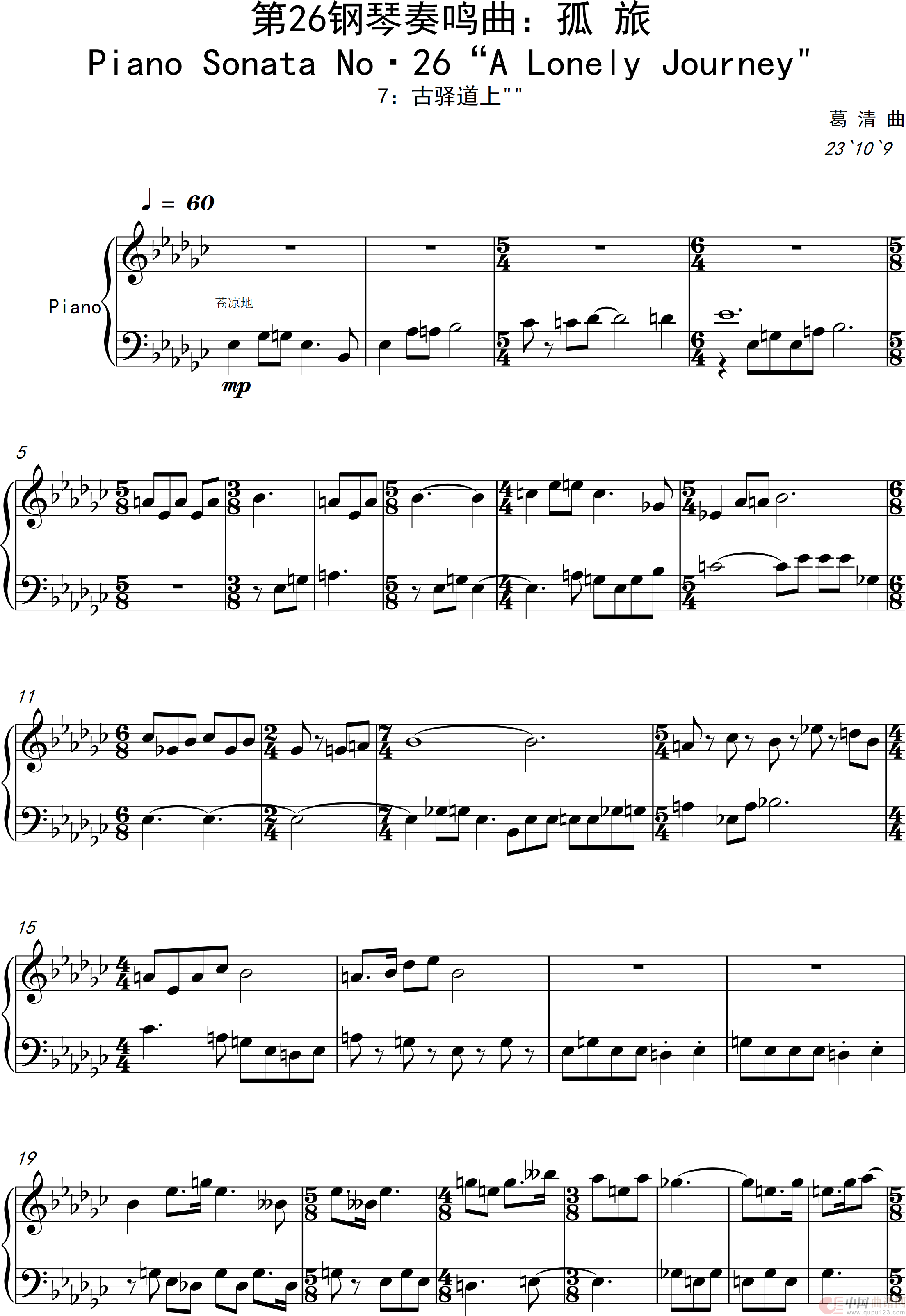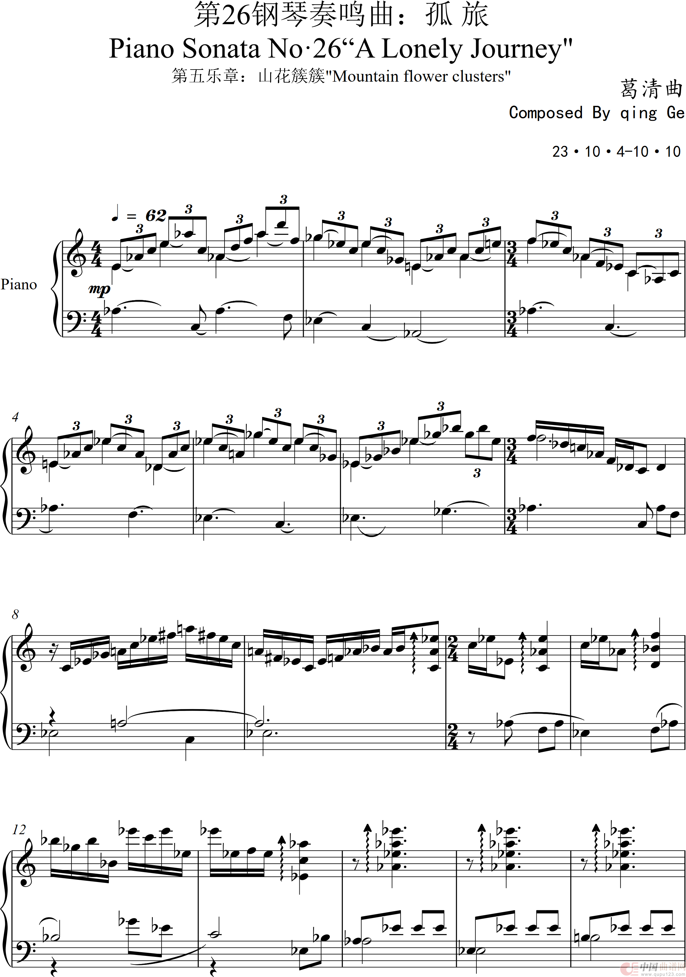 葛清曲谱推荐