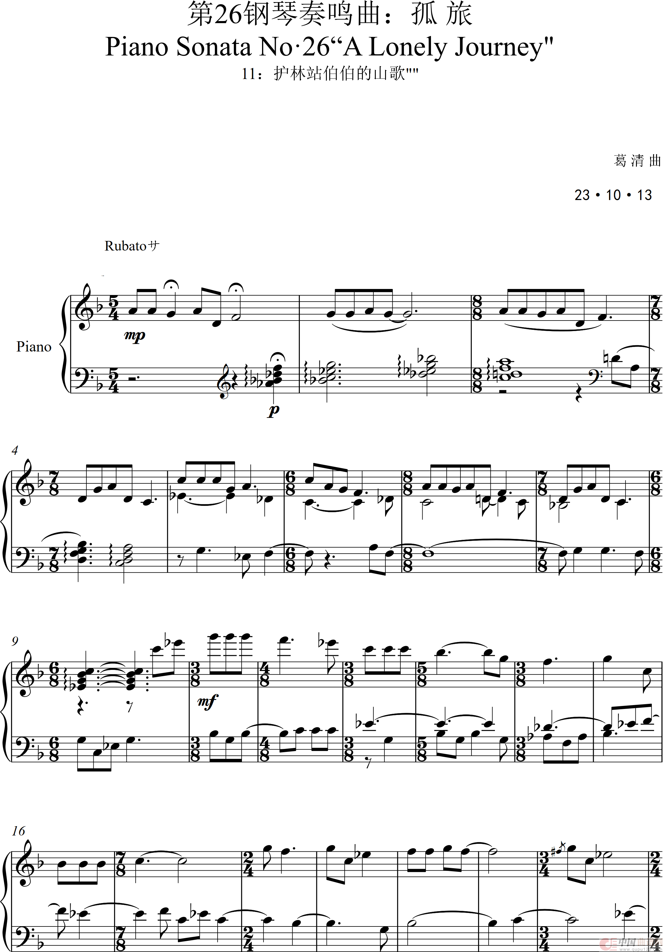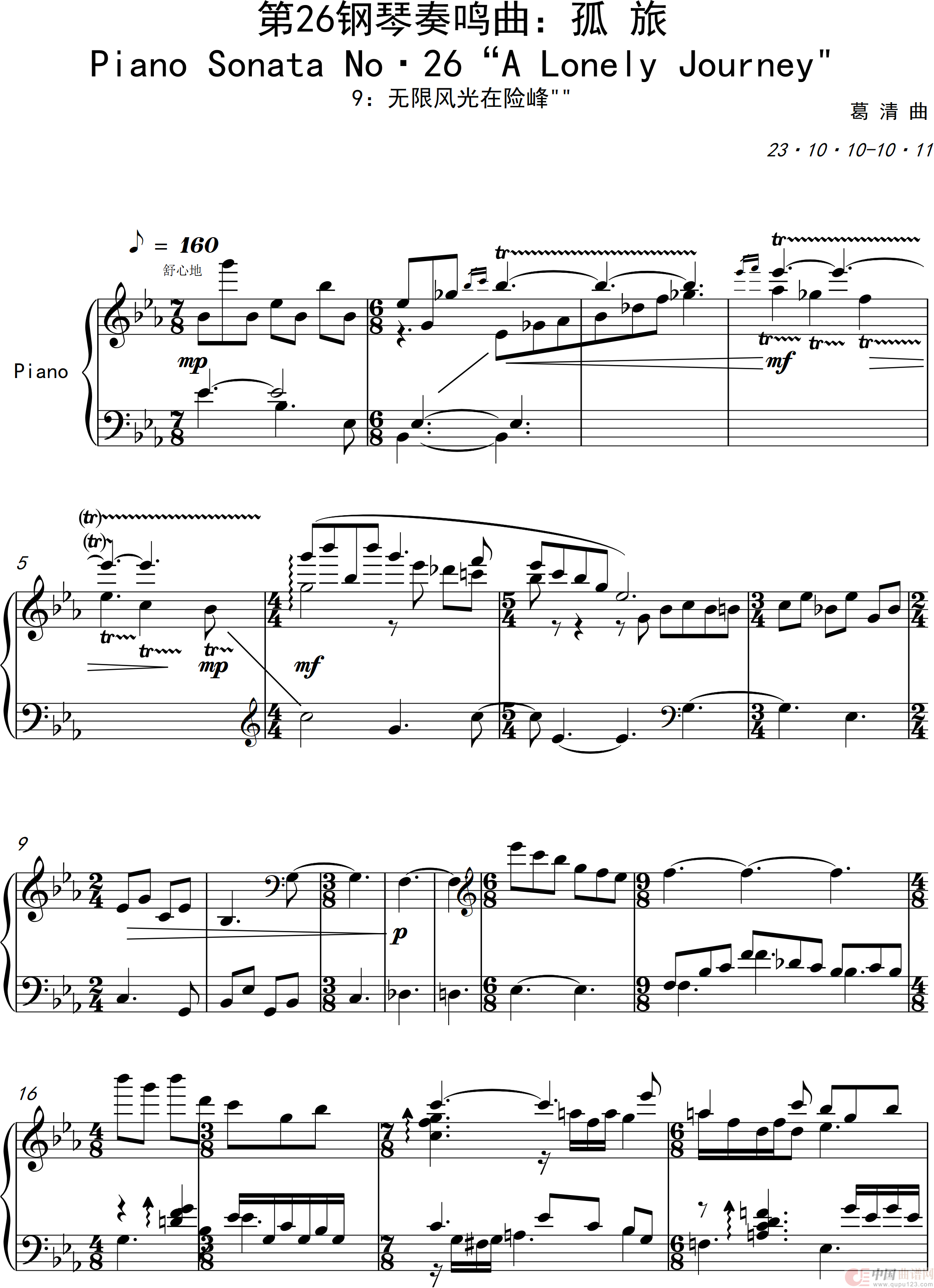 - 第十一钢琴奏鸣曲PianoSonataNo1(葛清作曲版)