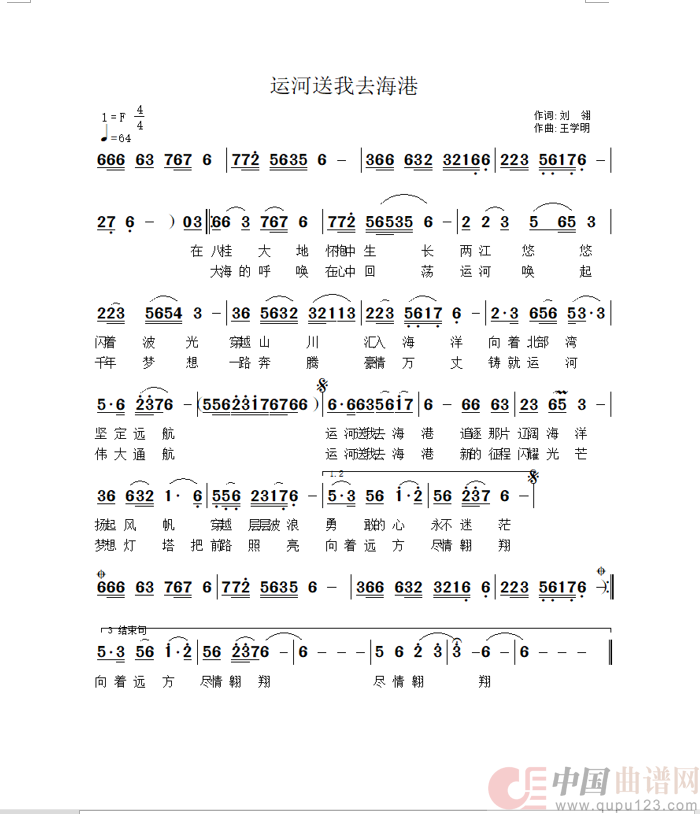 运河送我去海港相关五线谱