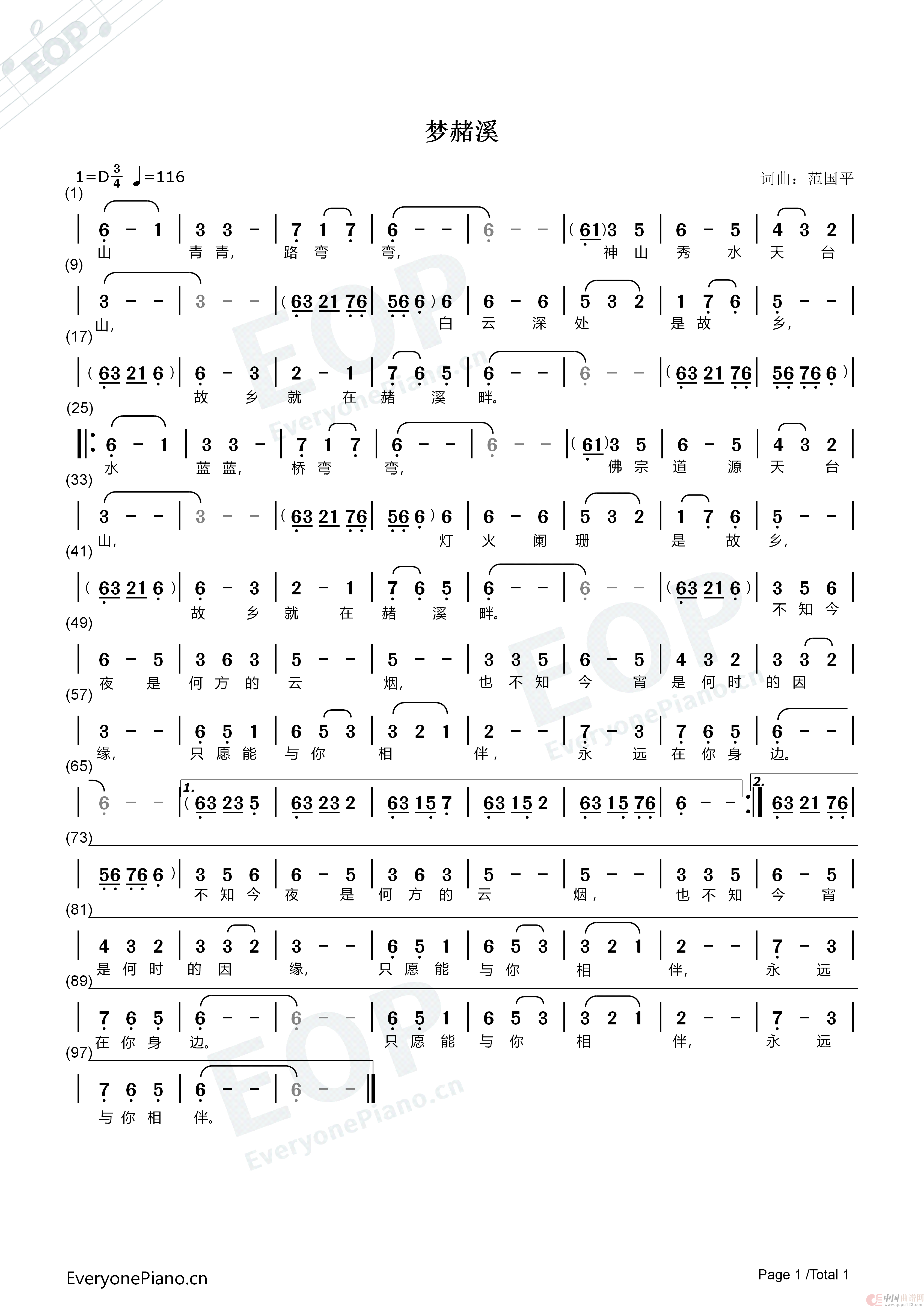 范国平曲谱推荐