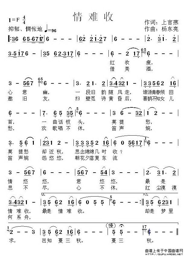 杨东亮曲谱推荐一曲商韵伴春秋迎春花儿开(冰凌词、杨东亮曲)回家(蒋雁航词杨东亮曲)贺新郎·悲白发新走西口(何丽华词 杨东亮曲)梅寒破茧成蝶(蒋卓桦词 杨东亮曲)飞红落清愁月色江声梅韵幽情(冰凌、杨东亮作品)生日祝福歌(张效密词 杨东亮曲)故乡(冰凌词 杨东亮曲)孤独的小鹿海之恋(冰凌词、杨东亮曲)回乡(施荣焕词 杨东亮曲)祖国 我亲爱的妈妈(蒋卓桦词 杨东亮曲)想念妈妈(冰凌词 杨东亮曲)痴情怎了断一曲千年(冰凌词 杨东亮曲)永远的爱人(杨东亮 词曲)