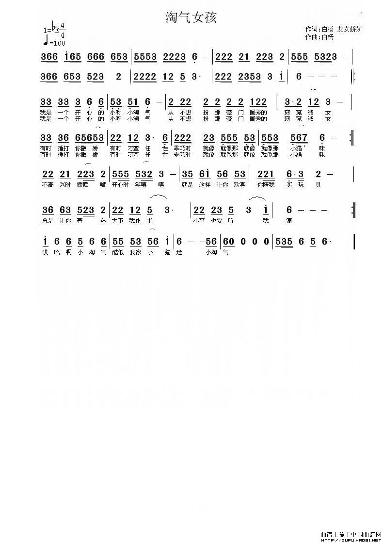 淘气女孩相关五线谱
