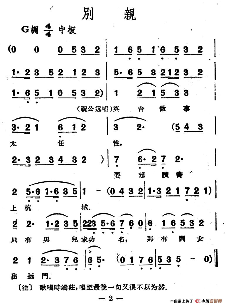 别亲(电影越剧《梁山伯与祝英台》选曲)相关五线谱