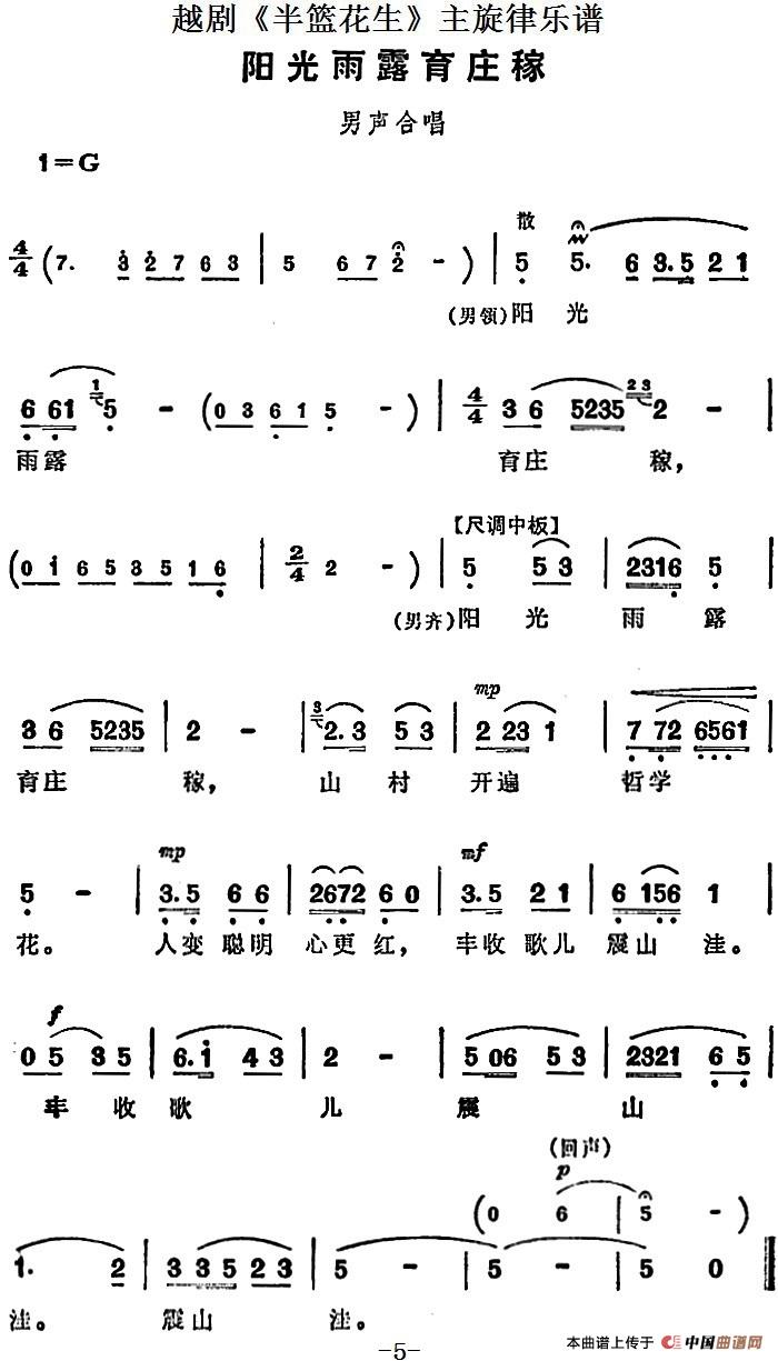 越剧《半篮花生》全剧主旋律乐谱:阳光雨露育庄稼(P5)相关五线谱