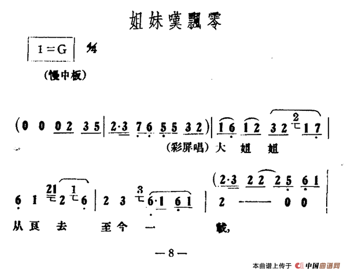 姐妹叹飘零(《情探》选段)相关五线谱