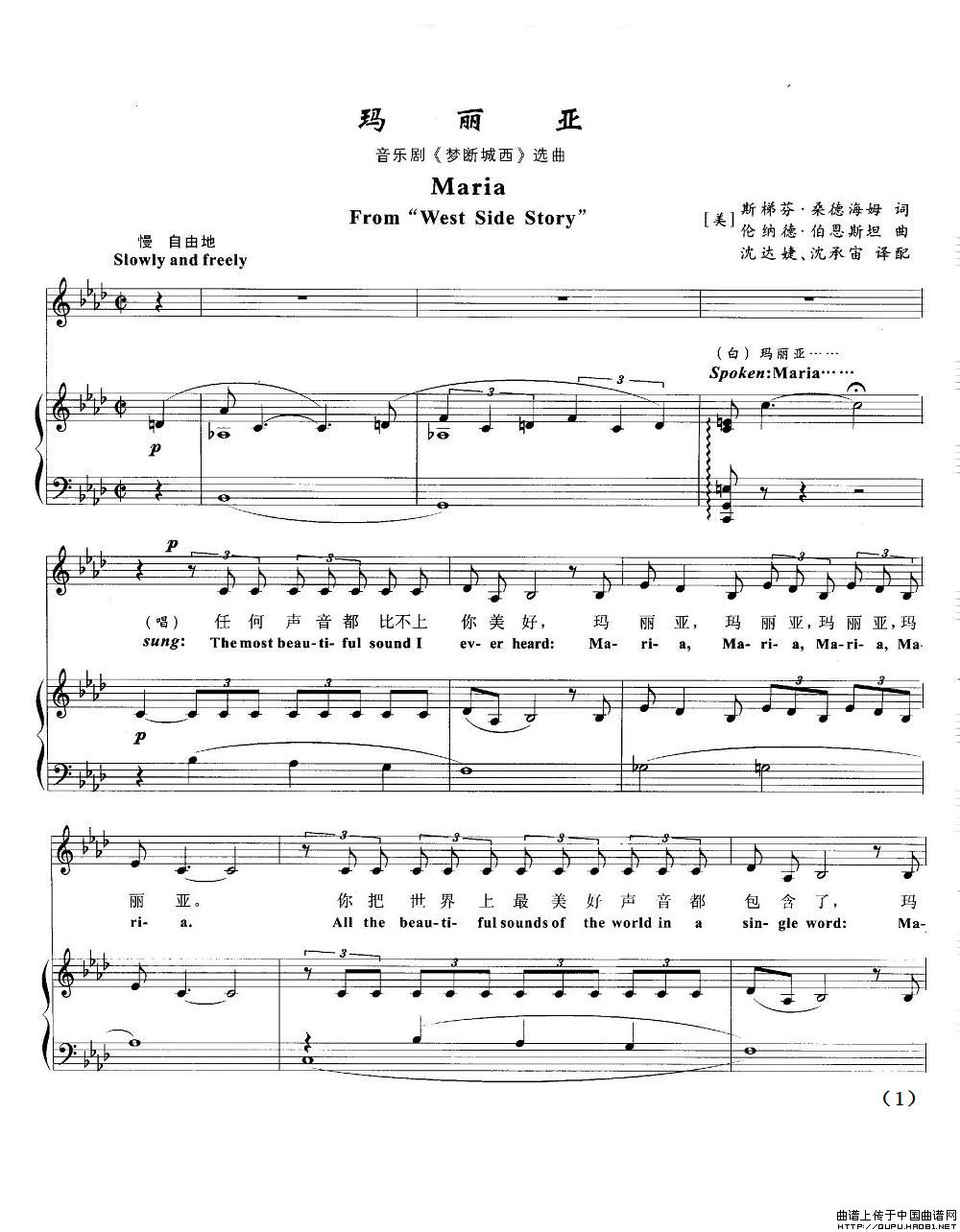 玛丽亚(正谱 [欧美音乐剧名曲选萃])相关五线谱